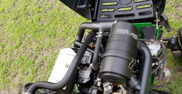 Has a cover canopy from the hot summer sun. With 5 cutting units with a total cutting width of 100 inches,