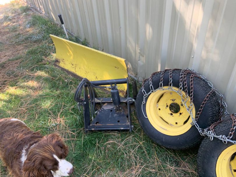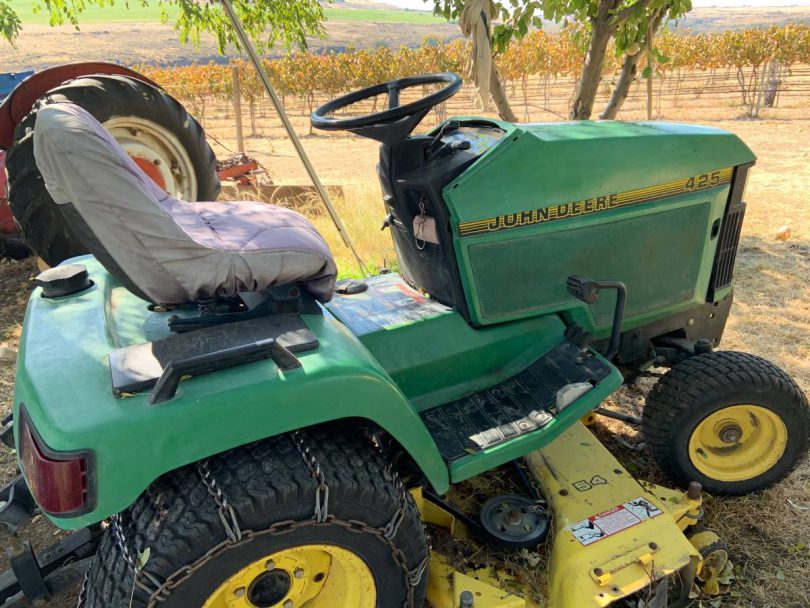 John Deere 425 Lawn Tractor with snow plow blade and other attachments Fully loaded with hydrostatic transmission, hydraulic front and back, 2 speed pto, 3 pt brace, and 42″3 blade mower. Only a total of 1040 hours. It has a 20 hp Kawasaki twin cylinder engine that just ruffles alongside This tractor is in excellent shape and has had limited use (now only light mowing) over the years as I have acquired several other tractors for much of the heavy work. In reality, for one season, the snow plow and rototiller were only used briefly. I want to sell all the tractor attachments and ask for $4800. Comes with a 54 “fully maneuverable snow plow blade hydraulic front mount control, 5 ft rototiller, 2 bottom plow, and rear tire chains. Have additional set of rear tires and chains as well. See images attached. This is the best in a small tractor to do all the things you’ve got on a tiny acreage.