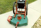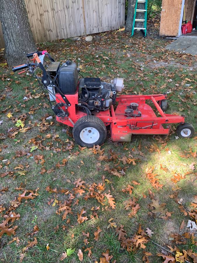Hydrostatic 36″ Gravely Pro 300 14 HP Vanguard Walk Behind (2cylinder Engine). Start with an electric battery. A staggering amount of power. Cuts uphill without pausing or missing a beat. I’ve had it for two seasons and am selling it because I recently purchased a zero turn sit on mower and have a lot of leaves.