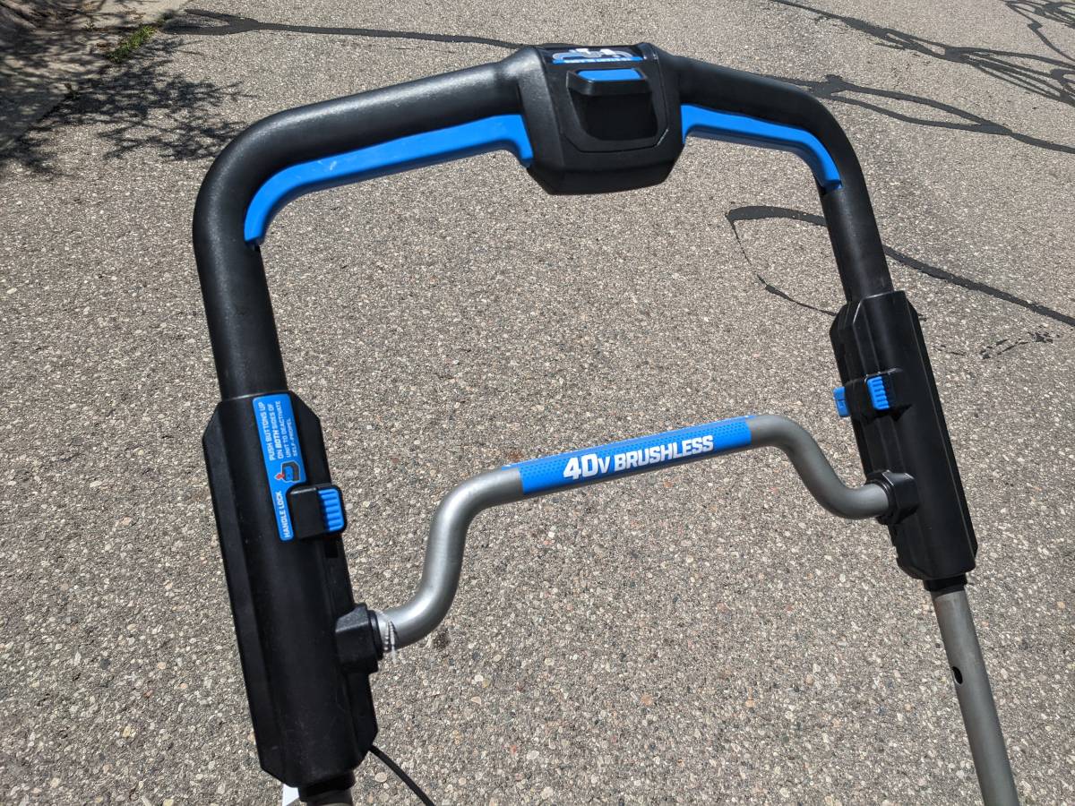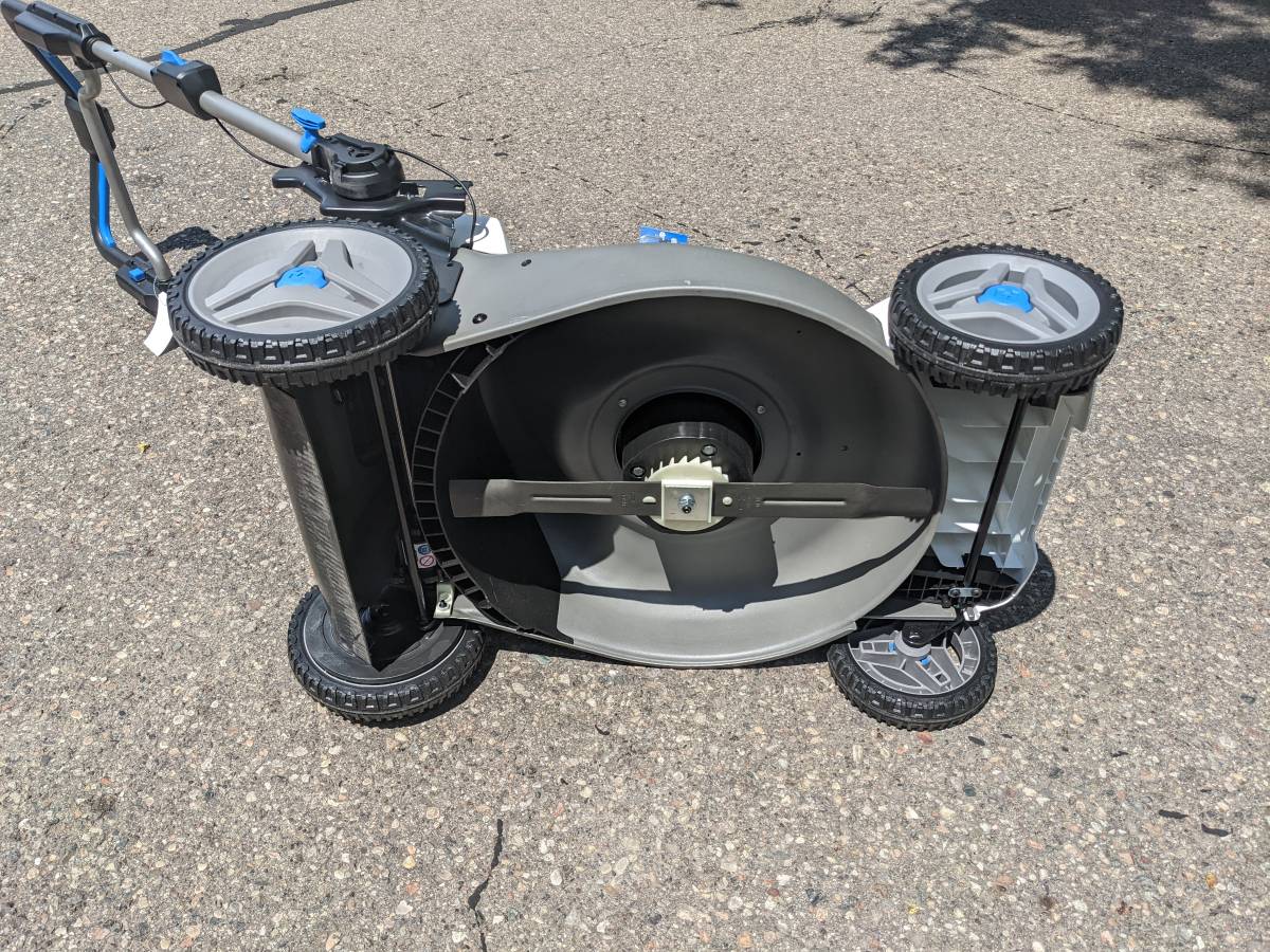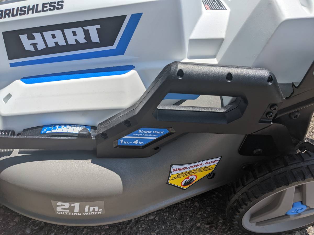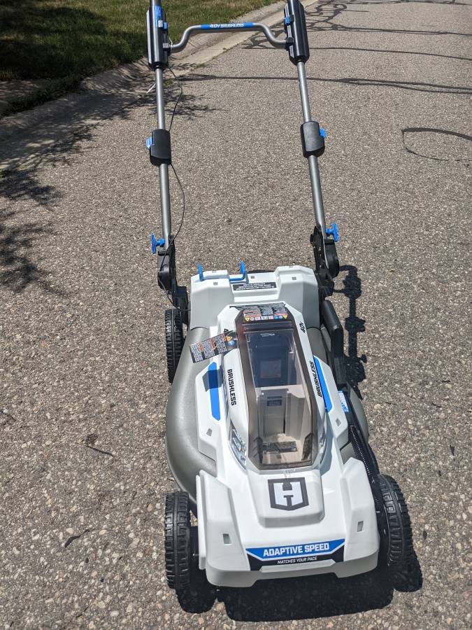 This lawnmower has never seen grass before. This is Hart’s best electric mower. The mower is self-propelled and has adjustable speed, slowing down when you do. You can also lock the handle in place. It also comes with a bag that has never been used. Battery and charger have been replaced. This is now retailing at $535 plus tax. When not in use, it folds up quite little and may be stood on end, taking up very little space. The 21-inch Brushless Adaptive Speed Mower has a runtime of up to 30 minutes and is perfect for yards up to 1/2 acre. For many more seasons, brushless technology offers steady power without bogging down and longer motor life. This device immediately adapts to your pace thanks to Adaptive Speed Self-Propelled Technology. Instead of changing each of the 4 wheels separately, height adjustments are simple with the novel one-handed single-point height adjustment trigger handle (1-inch – 4-inch). When one of your batteries runs out of juice, you can keep mowing thanks to on-board battery storage, which can hold two batteries simultaneously. This mower has folding handles for compact and simple storage in your garage and a steel deck for maximum durability. With the option of bagging or mulching, decide how you wish to mow. Each is a component of the 40V System, which provides ALL POWER and NO GAS. includes one 5.0Ah battery, a charger, and a 21-inch brushless adjustable speed mower.
