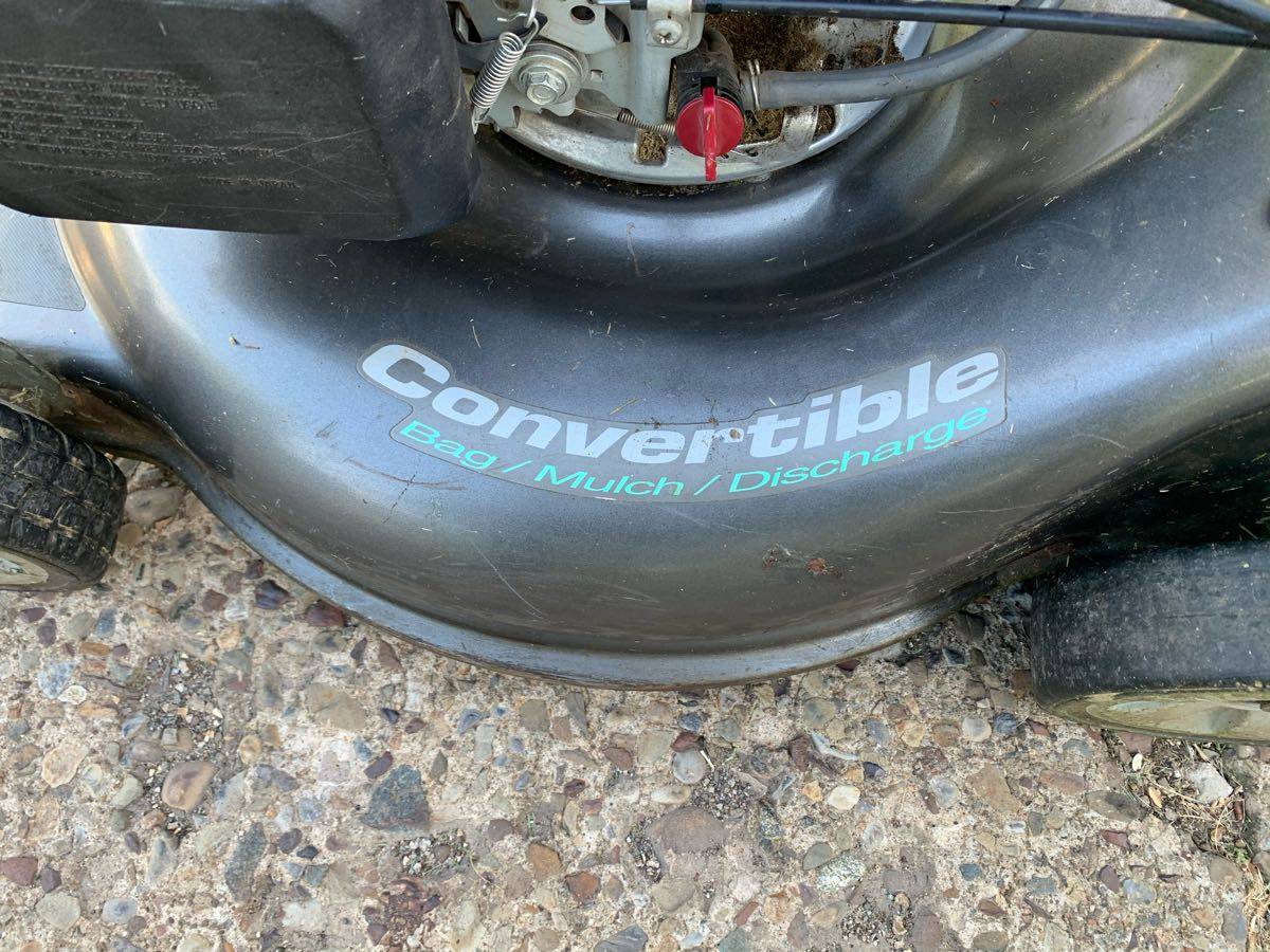 A 21-inch push lawnmower with a Honda GCV160 engine, the Honda Harmony II HRT216 model with self-propelled , and quick launch. Bag / mulch / discharge reversible. Rear wheel drive, very quiet and runs fantastically. Great for both the children and the women.