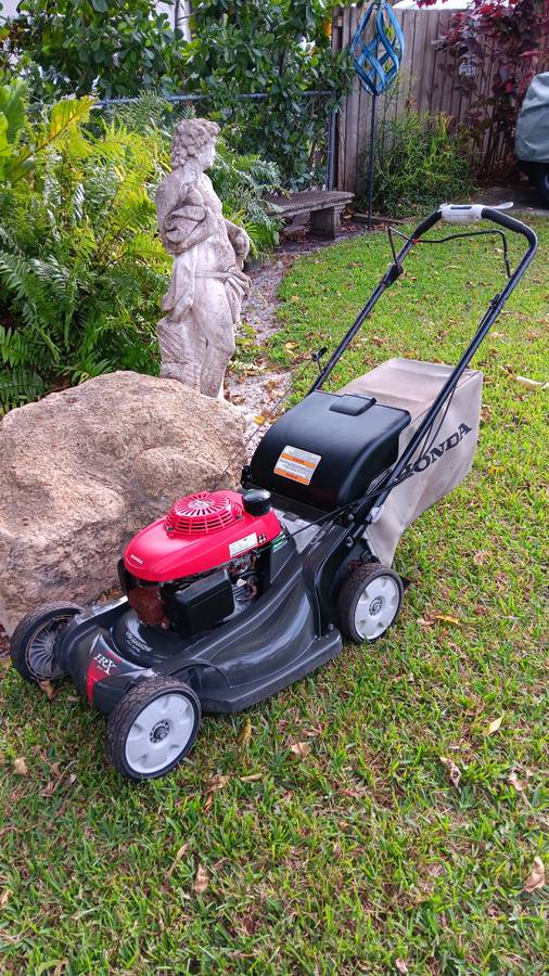 Available for purchase is a Honda HRX 217 equipped with a Versamower 4-in-1 system. This mower features an automatic choke and offers a 21-inch cutting width. It is designed for mulching and can be operated with or without a bag. The mower’s deck is entirely made of plastic, ensuring it will not rust. It starts effortlessly on the first pull and represents Honda’s premium mower model. The unit is in excellent condition, originally priced at $800 plus tax.