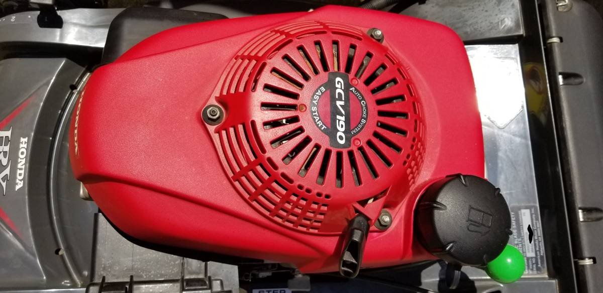 Within the last month, a new Honda OEM spark plug was installed, and the oil change blades were sharpened.