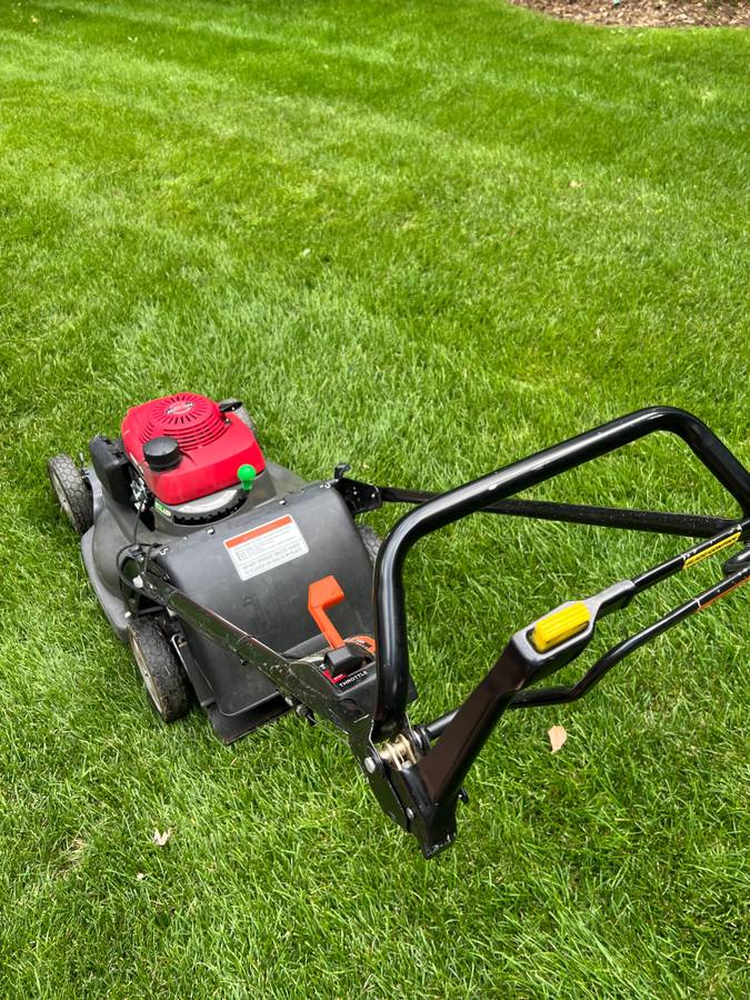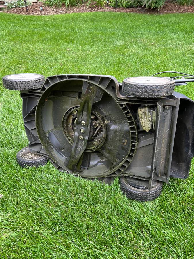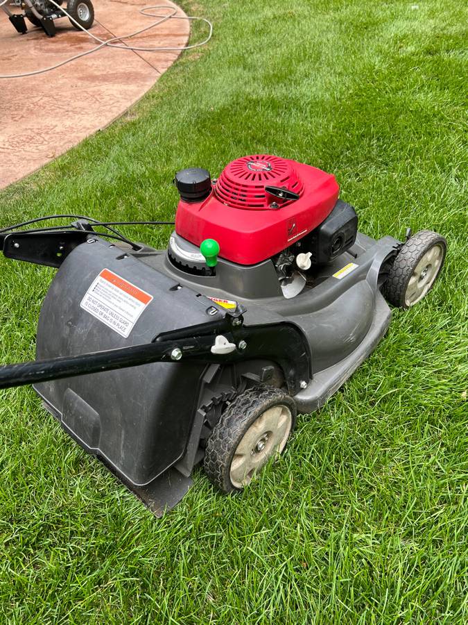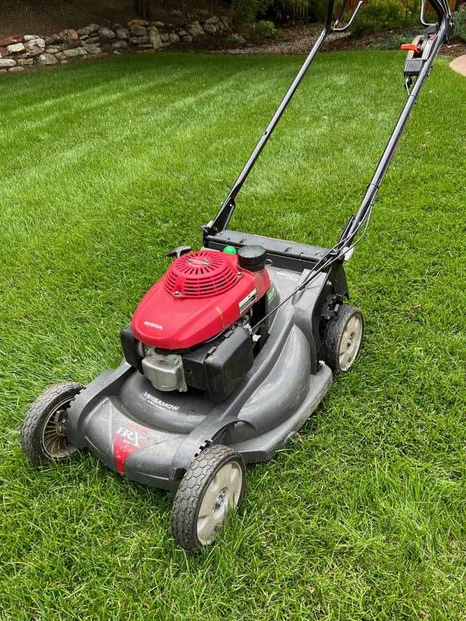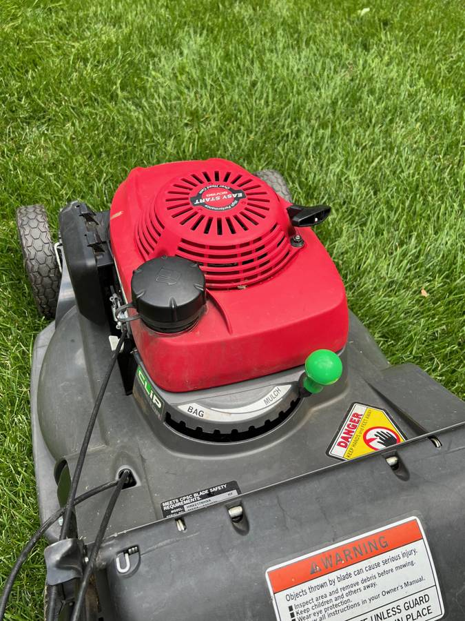 Up for sale is a nice Honda 21″ Self-Propelled Lawn Mower with Hydrostatic Cruise Control and the Honda “Roto-Stop” function, which stops the blades while the engine continues to run. This mower features an integrated Versamow system with an on-deck Clip Director that allows you to switch between mulching and bagging with the turn of a single adjustment handle. It has a self-propelling mechanism with variable speed and a rust-free Xenoy cutting deck. This mower is about 14 years old, but it still runs well. There is also an extra set of twin blades included.