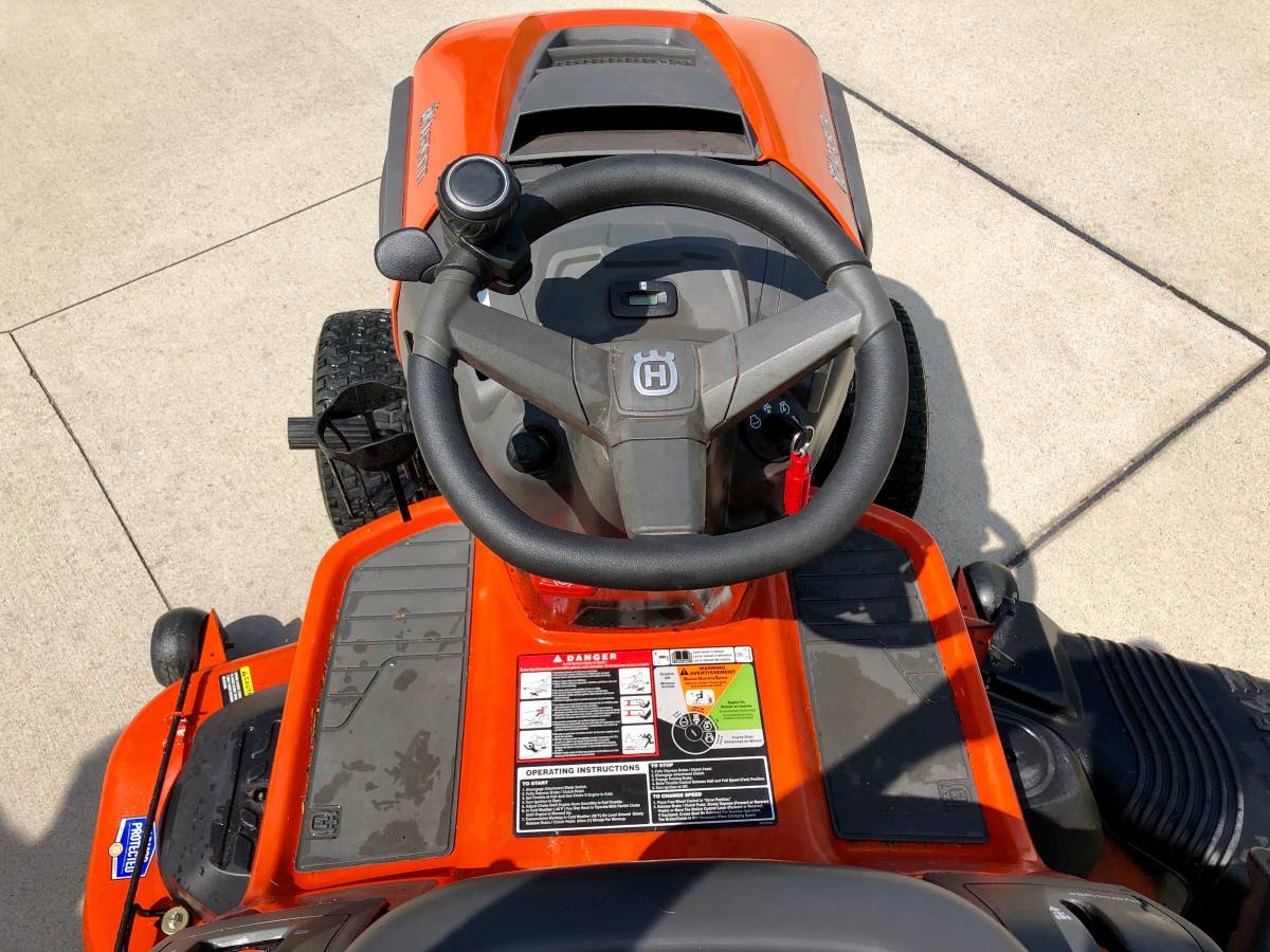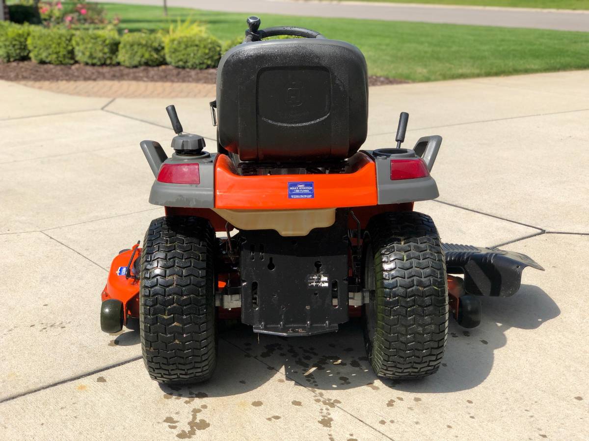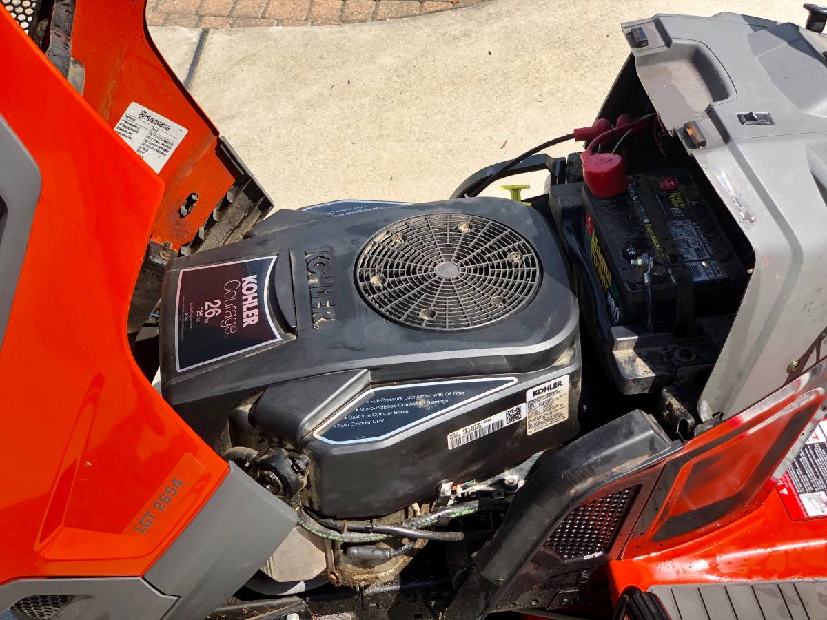 Excellent condition Husqvarna 54″ Hydrostatic Riding Mower Model LGT2654 with 190 hours on it, brand new blades and battery this year. This year’s model Husqvarna beefed up with a Kohler Courage series engine (instead of last year’s Kohler Courage), strengthened the mower deck and gave the deck a 10-year warranty. The mower is comparatively quiet compared to others with and without the blades attached! It moves smoothly and has excellent control and speed. I’m just using it to cut grass, if I do any heavy hauling, pulling or using thatcher, I’m just using my 4 wheeler. You get what you’re paying for.
