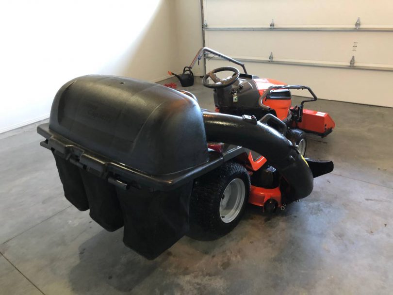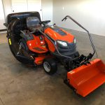 With just 200 hours this riding lawn mower is in excellent condition! It is the big dealer tractor model with the heavy frame and the large rear tires. Has the giant 26 HP kohler engine that will never run out of power at any job along with the 54 Inch cutting deck to cut down any lawn or field size. Has the hydrostatic velocity transmission adjustable and no gears to think about. It also comes with wide bumper push bar to protect the plastics. A big triple bin bagger attached to the back is useful for picking up leaves or grass and eliminates trips to dump for those larger yards. Husqvarna front end loader also has great attachment for scooping up snow, dirt, or gravel. Those mowers retail for more than $3k alone.