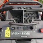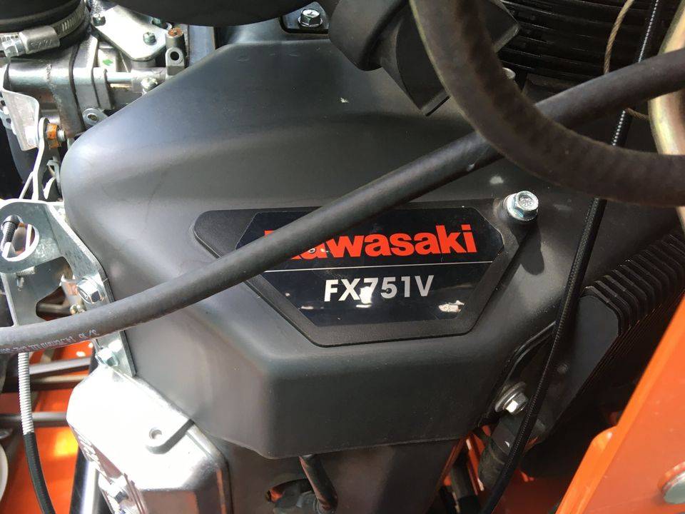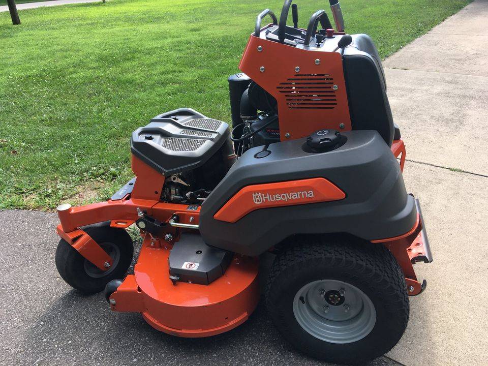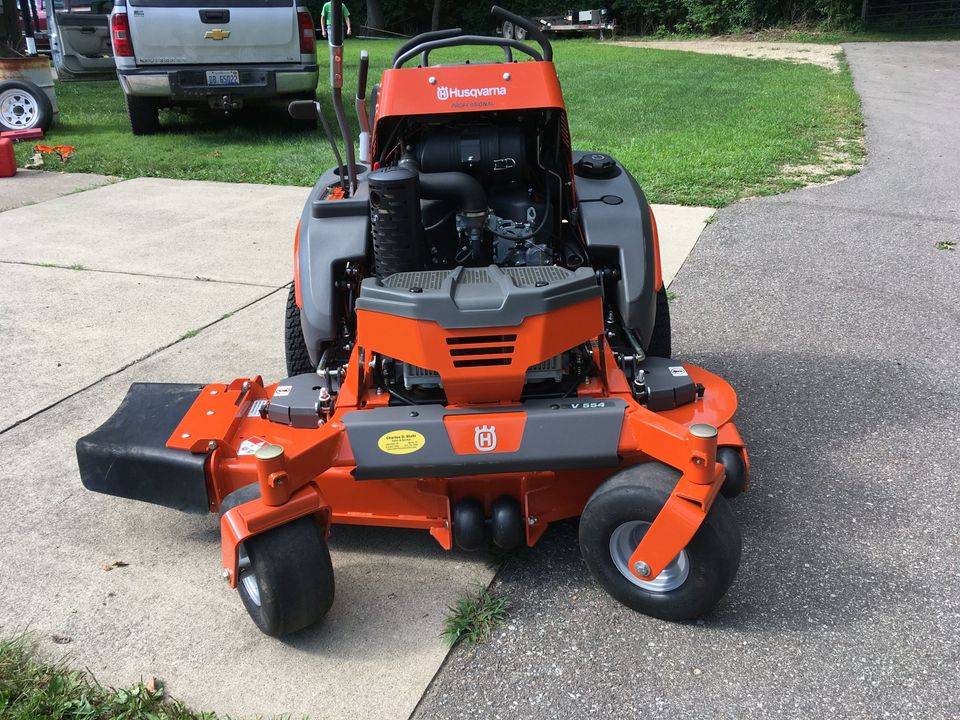 A Husqvarna V554 Stand On Zero Turn Mower is available for purchase. It is equipped with a 24.5 hp Kawasaki FX751V engine and has a 54″ fabricated cutting deck. The mower has only been used for 61 hours as of February 15, 2023, and the tires are still in their original condition. This model boasts a 54 inch 7 gauge fabricated ClearCut mowing deck, a 24.5 hp Kawasaki FX751V engine, and is designed to be maneuverable, efficient, and convenient.