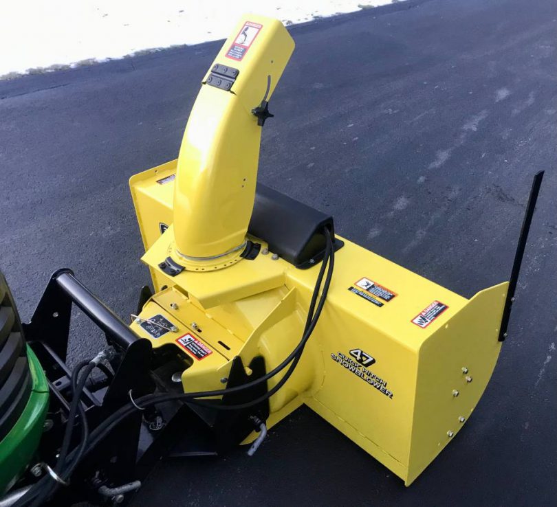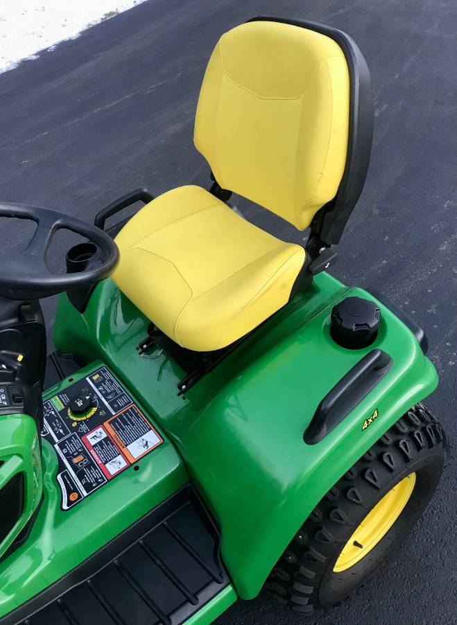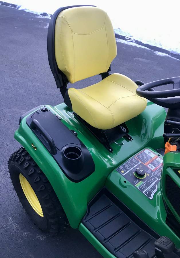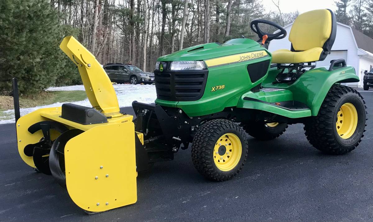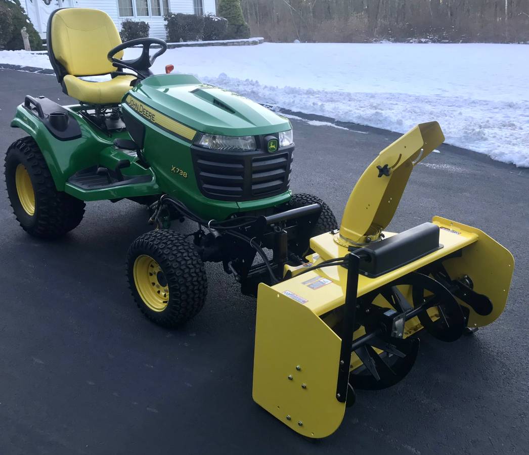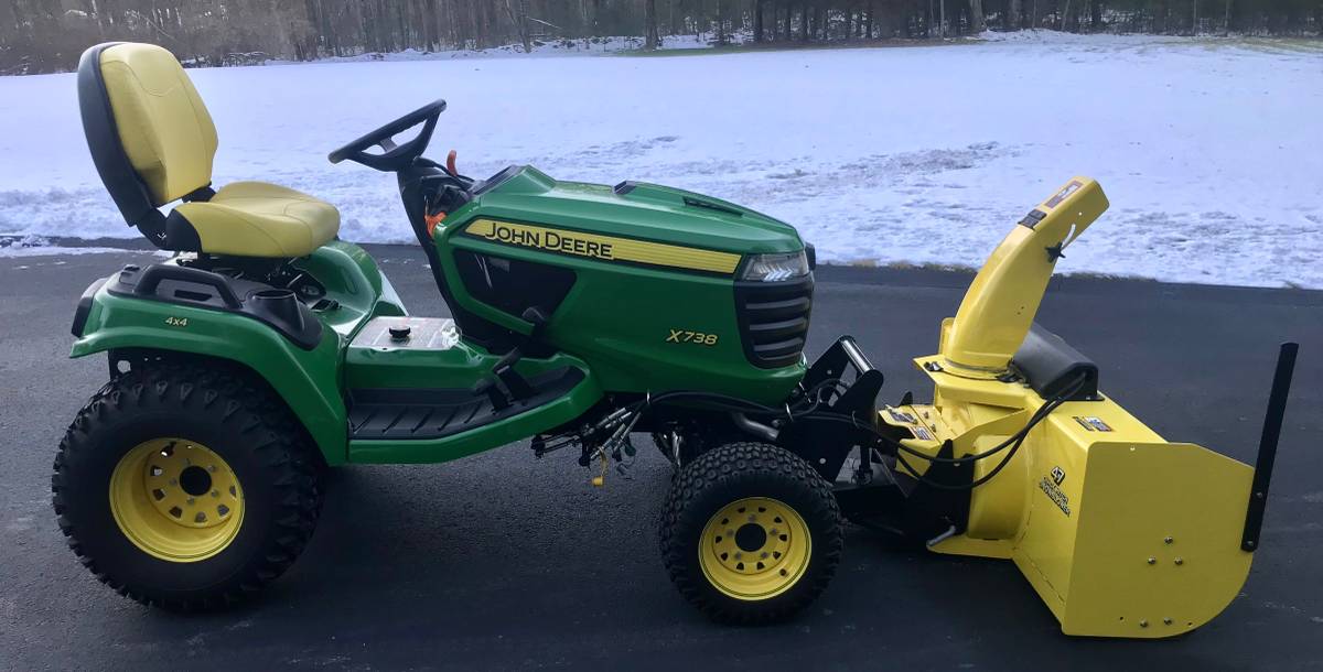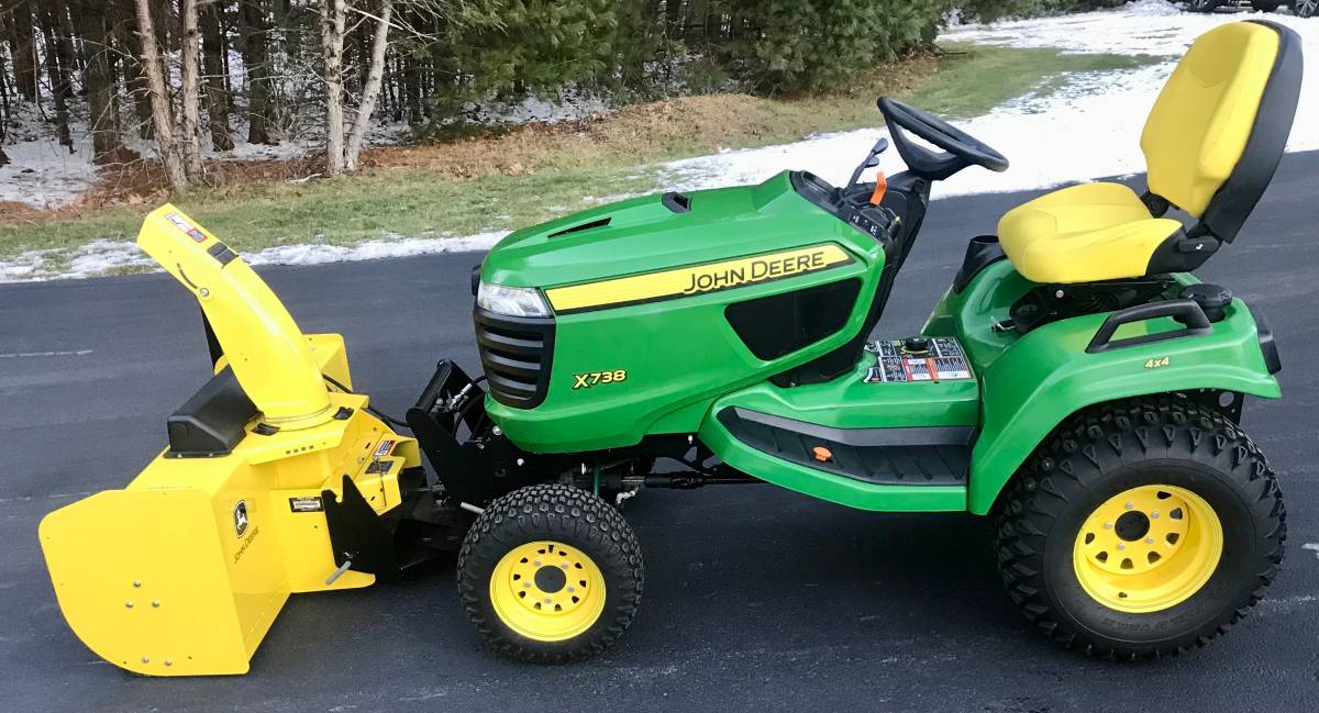 John Deere X738 HST 4X4 “Signature Series” Lawn and Garden Tractor with 54″ Mid Mount Mower, 47″ Two Stage Front Mount Snow Blower, and ONLY 189 Hours! It has a rock solid 25.5 HP EFI (Electronic Fuel Injection) Kawasaki FD750D Liquid Cooled V Twin Gasoline Engine, HST Hydrostatic Transmission, Power Steering, Tilt Wheel, Cruise Control, All Hydraulic, Differential Lock, 4 Wheel Drive, HDAP Tires, and All The Attachments You Need To Take Care Of Your Estate In All Four Seasons. The JD 54″ Commercial Grade Drive Shaft Driven Auto Connect “54 Edge High Capacity” Mid Mount Mower Deck and the 47″ Front Mount 2 Stage Snow Blower With Hydraulic Chute Rotation are included (Quick Hitch and Driveshafts Included). The machine has been garaged, serviced, and is ready to go. It was recently serviced (Oil, Oil Filter, Air Filter, Fuel Filter, Greased, Etc.) As shown in the photos, the machine is in exceptional, like new condition and is ready to go!
