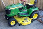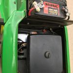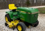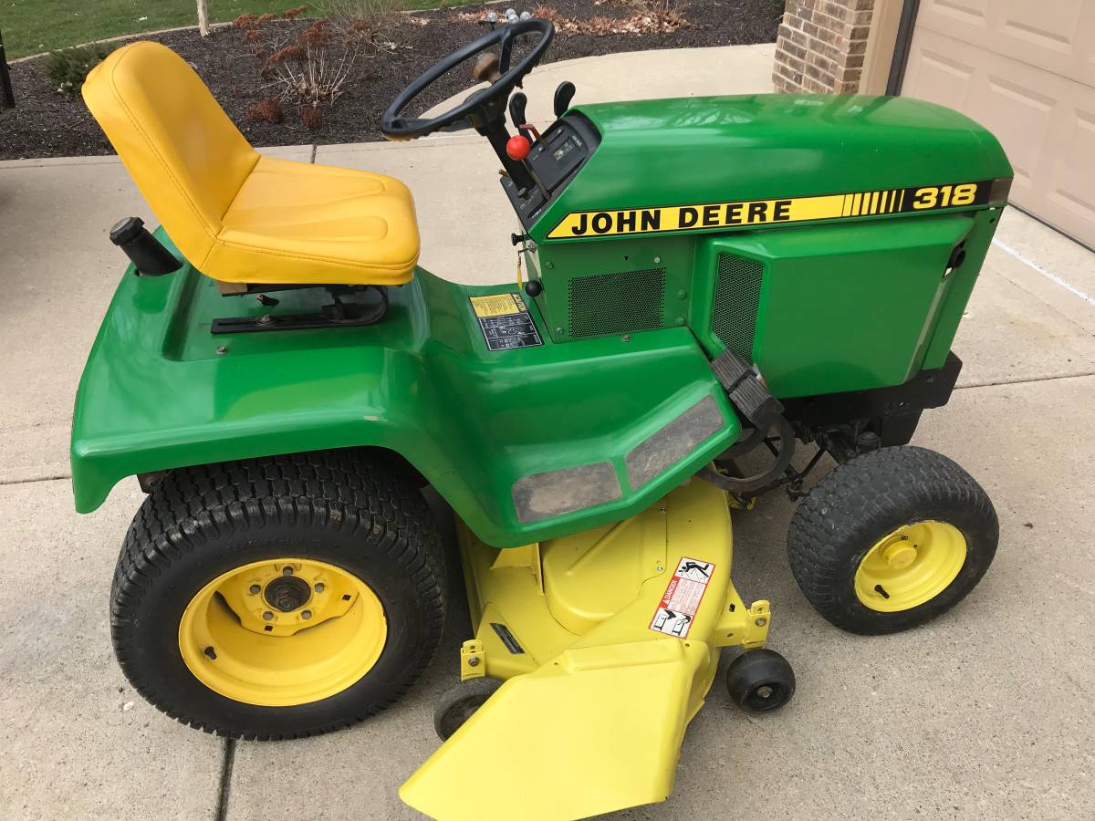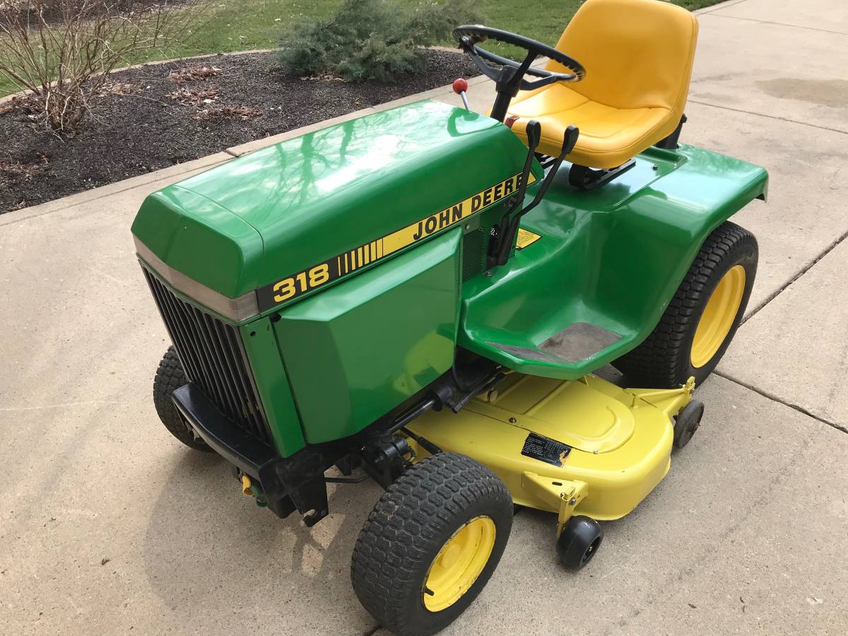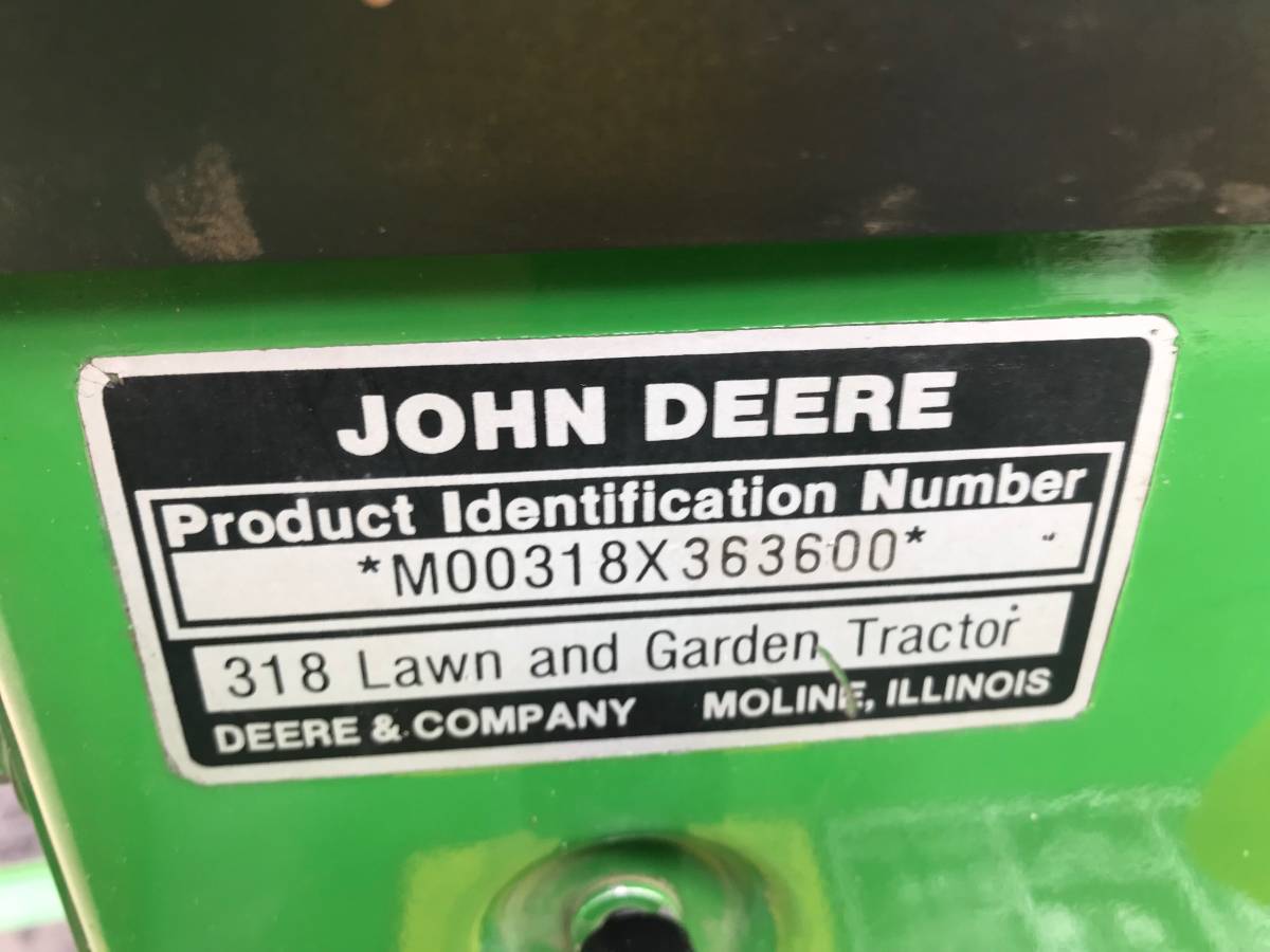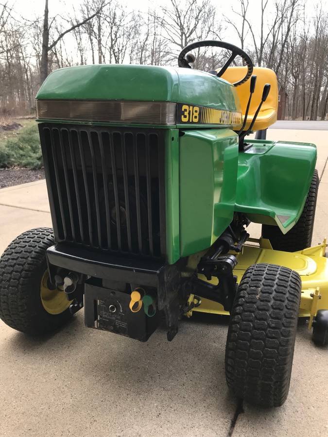 For sale is a John Deere 318, equipped with a 50-inch mower deck. It has been kept in a garage and well-maintained. The frame has only clocked 1191 hours. The Onan engine runs strongly and was recently rebuilt due to slight oil burning issues. The engine rings were replaced, cylinders honed, valve guides and seals replaced, valves lapped, and valve lash set. Additionally, the heads were decarbonized, and the starter was rebuilt. The tractor’s steering is smooth and tight, and its tires, which are two years old, do not leak. The 50-inch deck has been completely rebuilt, featuring new sealed bearings and enamel paint. The tractor is currently lubricated, fueled up, and ready for use. The availability of tire chains, wheel weights, and delivery can be negotiated.