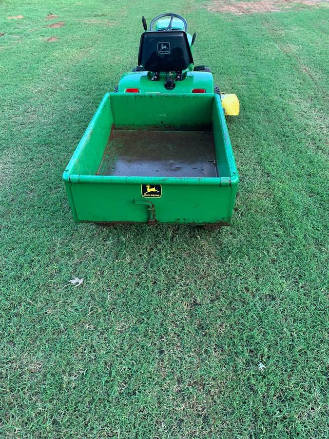 John Deere’s dump cart model 80 for sale. Great shape, rust in bed just a little surface. These often do not come around in this form. Mulch, yard instruments and lawn supplies are readily transported by the John Deere cart. This cart rapidly transforms for added versatility from a tow dump cart to a push dump cart.