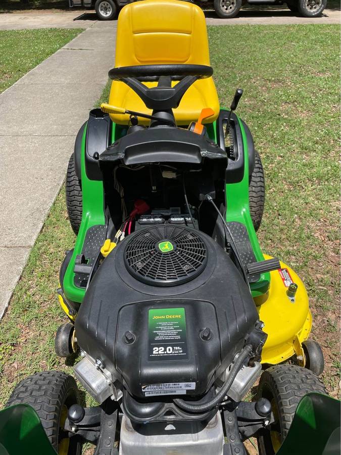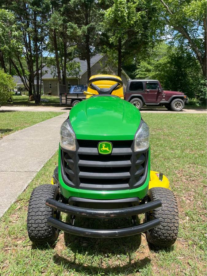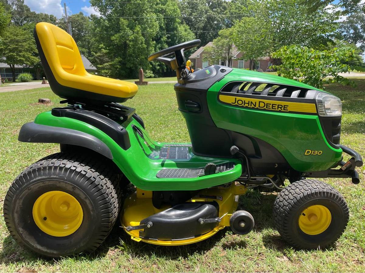 The John Deere D130 Automatic Riding Lawn Mower has been expertly maintained and cared for. Just fitted a new battery, cutting blades, and deck belt. Since new, only 203 total operating hours have been logged! New Spark Plugs, New Fuel Filter, New Air Filter, and Fresh Oil Change with New Oil Filter were just conducted as part of the seasonal maintenance. It has a 42-inch cutting deck with two anti-scalp wheels and a Deck Wash function. Has a powerful 22 horsepower John Deere engine that provides ample power and torque for any demanding task. Variable speed control using a foot pedal is simple to use. You may change speed and direction with hydrostatic transmission, which allows you to keep both hands on the steering wheel for better control. With Cruise Control and the highly requested Reverse Cut function, the tractor can maintain a consistent speed in tough terrain. A 2-bar front bumper guard is supplied, as well as an operator’s manual. It’s time to mow! For a modest cost, I’m happy to deliver with my trailer.
