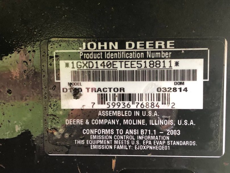 John Deere 2014 D140 mower 48 inch triple blade deck with 22hp twin cylinder engine wash out port Hydrostatic transmission With foot controls Electric PTO engagement 270 hours of running time Runs and cuts nice Seat adjustment, cup holder, headlights, storage bin * New battery and deck idler pulleys This 48-inch lawn tractor from John Deere comes under a Briggs & Stratton 2-cylinder engine featuring an automatic drive system and an electric PTO. It involves a high-back seat that is more comfy and a washout port.