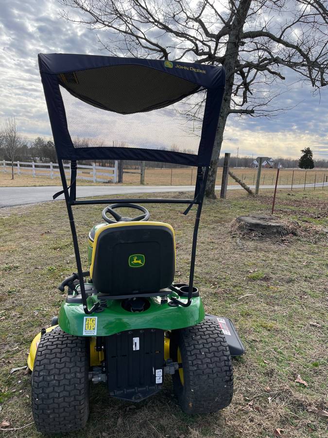 John Deere e140 mower with 48″ edge cutting deck, electric pto, hydrostatic drive, deluxe 2 pedals, and cruise control. Briggs and Stratton engine with 20 horsepower and extra bright headlights. The deck is equipped with four rollers to prevent grass from being scalped. It has a 3 hour timer, never cut grass, and a removable sun canopy. A new $200 valve is also included. The mower is a late 2020 model that has been reduced by $300 off the list price. and, as previously stated, includes a $200 canopy, saving you $500 on the mower when compared to the 2021 model mower.