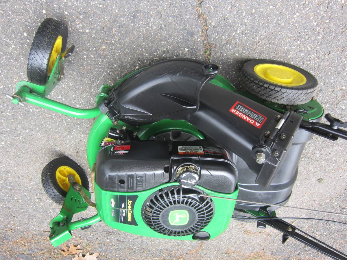 Used John Deere Walk Behind Lawn Mower21-inch model JS40 360 turn RWD 8.75 hp. Starts first pull, good clean mower huge amounts of power big yard with simple, front wheels lock mows really good, it’s overall shape is Excellent, oil changed. This has an automatic driving that helps us to only walk behind the machine while it mows. It’s not hard for a single person to clear a lawn bag like any other lawn mowers. It’s still started without any problems. Please call me for pickup.
