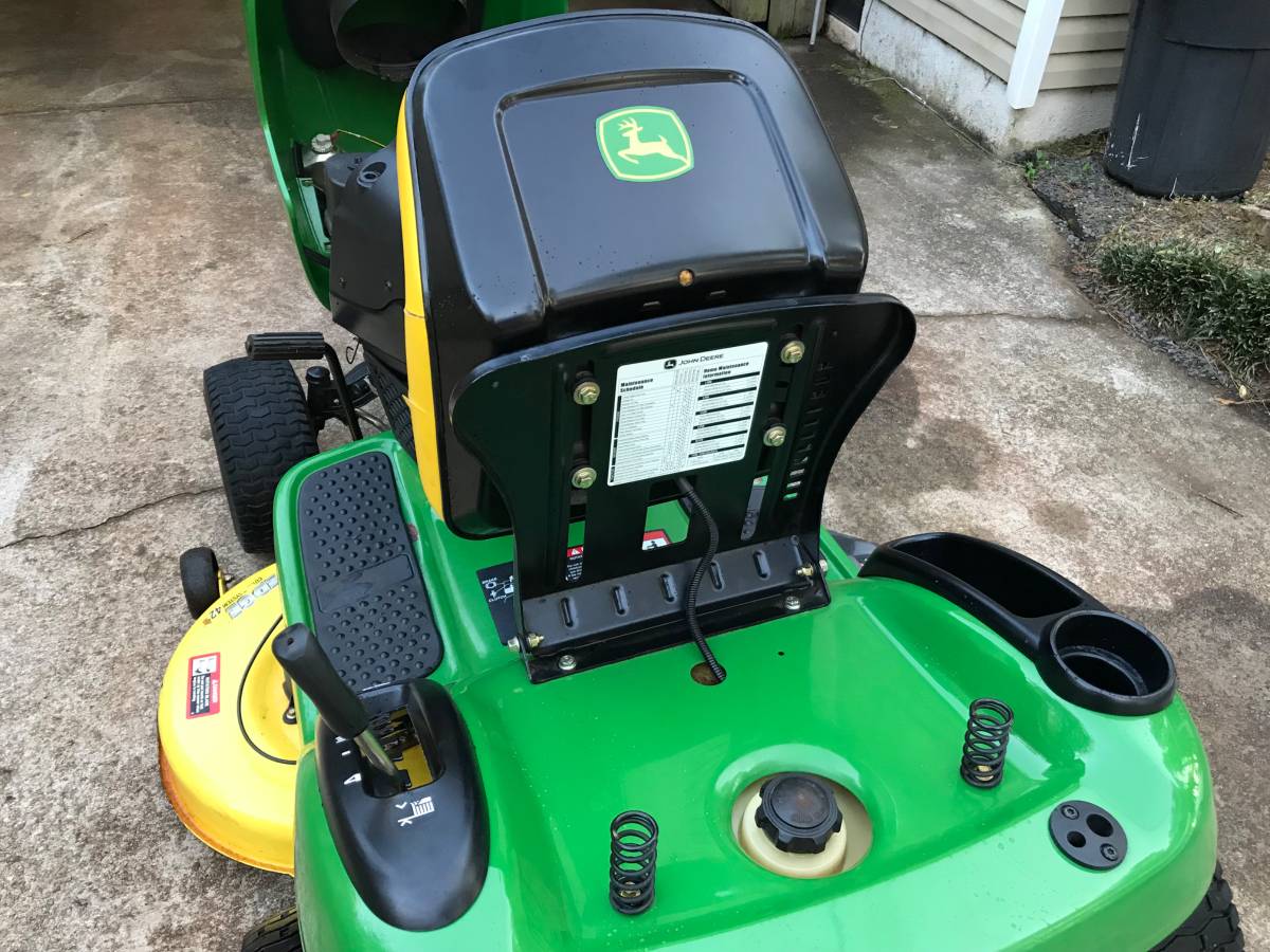 The John Deere L110 has a 42″ cutting deck, an automatic transmission with cruise control, a new battery, good tires, and is ready to work.