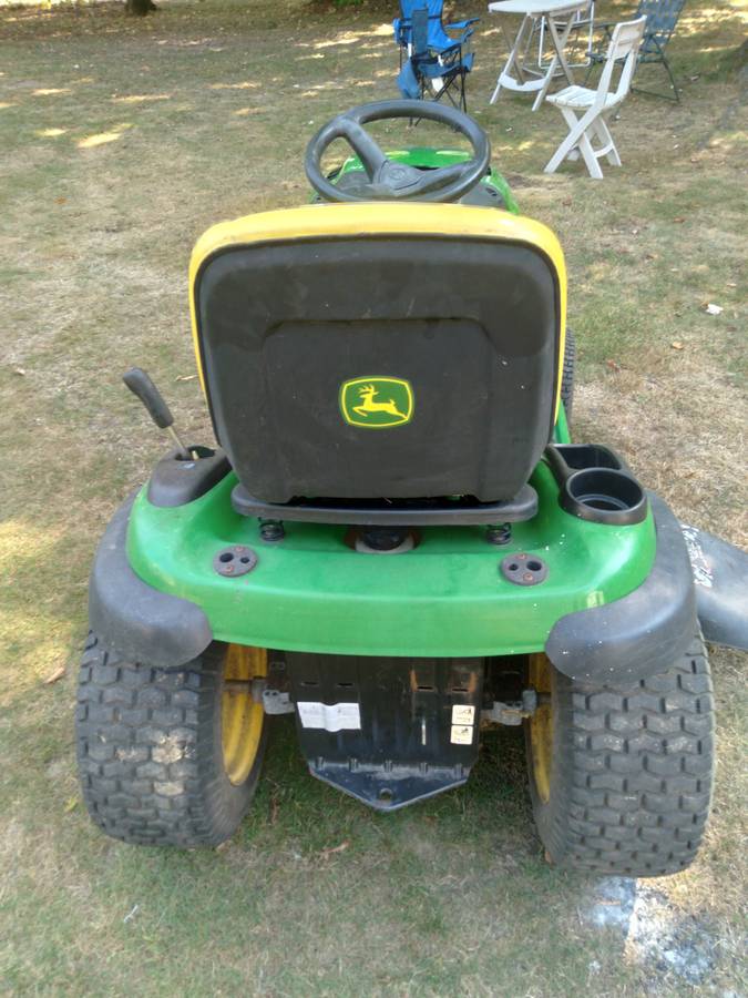 Decided to sell a John Deere lawn tractor L120. 48 inch triple blades and hydrostatic / automatic transmission. It was tuned up with new oil and filter this summer. Air keeps tires. The battery is a month old. The seat has a few rips taped to it. Has oversight of cruises. Compared to the 8 inch rear and 6 inch fronts, this is a true John Deere with 12 inch rear tires and 8 inch fronts. Run and cut as it ought to be. For an additional $175,00, I have a bagger for it.