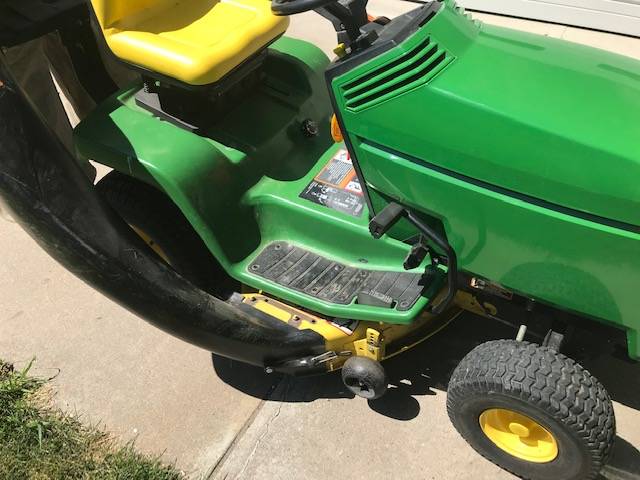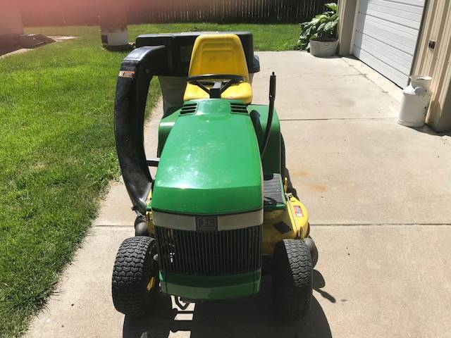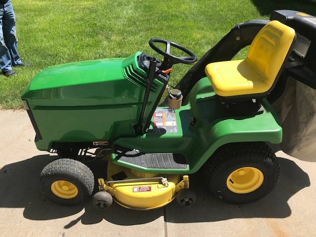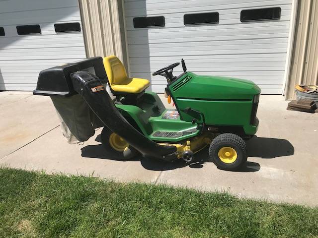John Deere LX-178 Riding Lawn Mower for sale. Kawasaki 15 H.P. V-Twin overhead valve liquid cooled engine 38″ mowing deck, with baggage set and mulching blades set. John Deere grass catcher / bagger New seat and new hood. Good mechanical condition Sale price $1300.00 cash in hand.