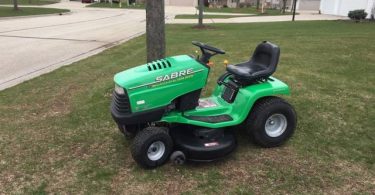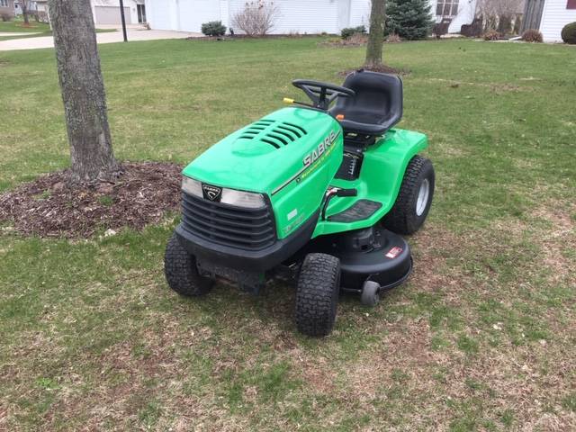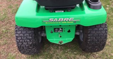 Preowned John Deere Sabre 42″ deck 17HP Riding Lawn Mower with briggs engine-the hydro trans Hydro trans. Fresh oil, sharp blades, new battery, nice clean belts, slight tear in the seat runs and drive like it should John Deere Riding Lawn Mower.