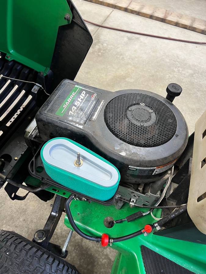 I have a John Deere Sabre with a 42-inch deck and a 14.5 horsepower Briggs and Stratton engine for sale. It comes with a bagger and has been upgraded with a new carburetor, fuel lines, spark plug, coil/plug wire, and air filter. The machine runs perfectly and requires no further work. If you’re interested, I’d be happy to discuss delivery options for the right price.