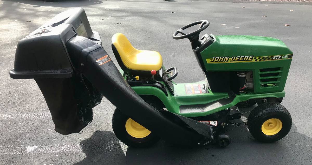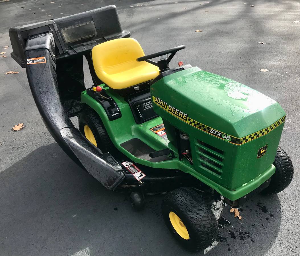 Up for sale is a John Deere STX38 Riding Lawn Tractor With A 38″ Mowing Deck and Double Bagger! The tractor has a 13 HP Kohler Command Single Cylinder Engine, a 5-speed shift-on-the-fly transmission, and a 38-inch wheelbase “Heavy-Duty Mowing Deck, Double Bagger, and Other Features No more raking leaves; simplify your spring and fall cleaning! It will pick up leaves, sticks, pine needles, and other debris. The machine starts, runs, drives, mows, and bags beautifully. Because the one on the machine has a crack, an extra bagger hopper assembly is included.