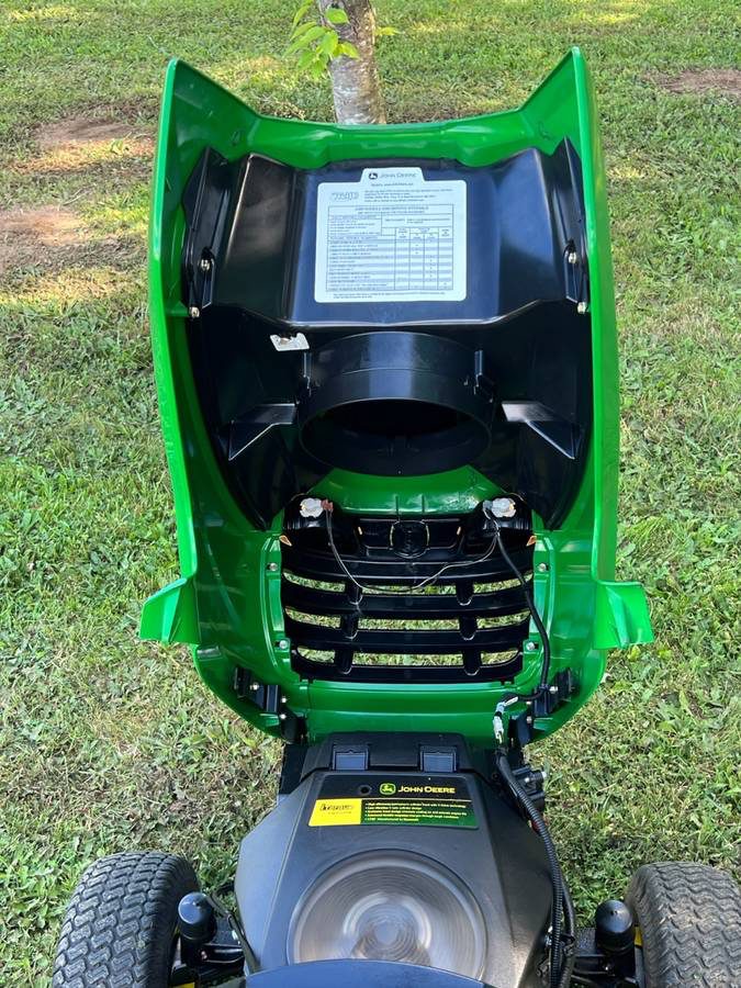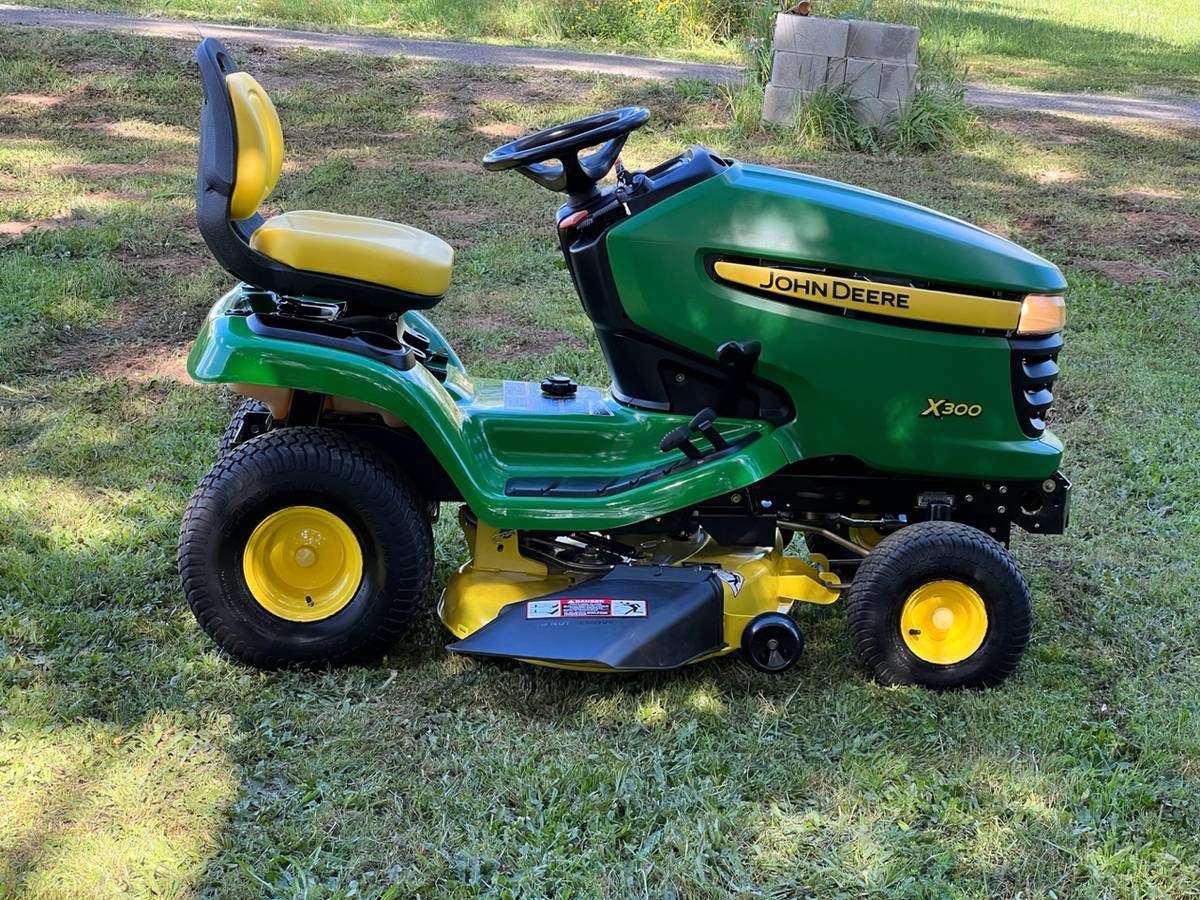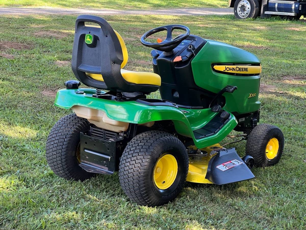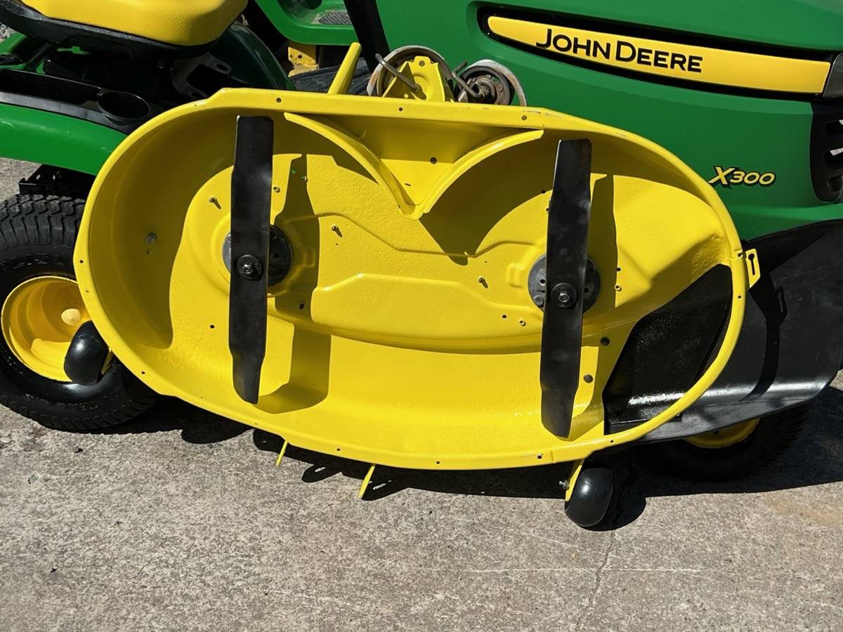 This John Deere X300 riding lawn mower tractor is available for purchase. It only has 398 hours on the clock. The 42” 2 blade washout mow deck has been completely refurbished. Equipped with a highly sought-after Kawasaki V-Twin engine, this mower is reliable and dependable. It has been fully serviced, including a complete tune-up, new spark plugs, and a brand new battery. The front and rear tires are in excellent condition, and the mow deck is in great shape. The transmission drive system has been fully serviced with new idlers and a new belt, all using genuine John Deere parts. The deck spindles and all moving components have been greased and lubed up for optimal performance. This mower features a fully automatic hydrostatic transmission with twin pedals for easy operation. It also has clear headlights with new bulbs, running on non-ethanol clear premium gasoline for smooth performance. Additionally, it comes with new fuel filter, fresh oil, new oil filter, new air filter, and a new deluxe high back seat for comfort. The mower also includes a storage compartment with cup holder, manuals, and main and spare keys.
