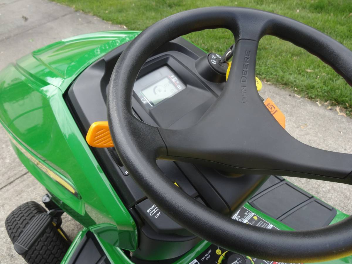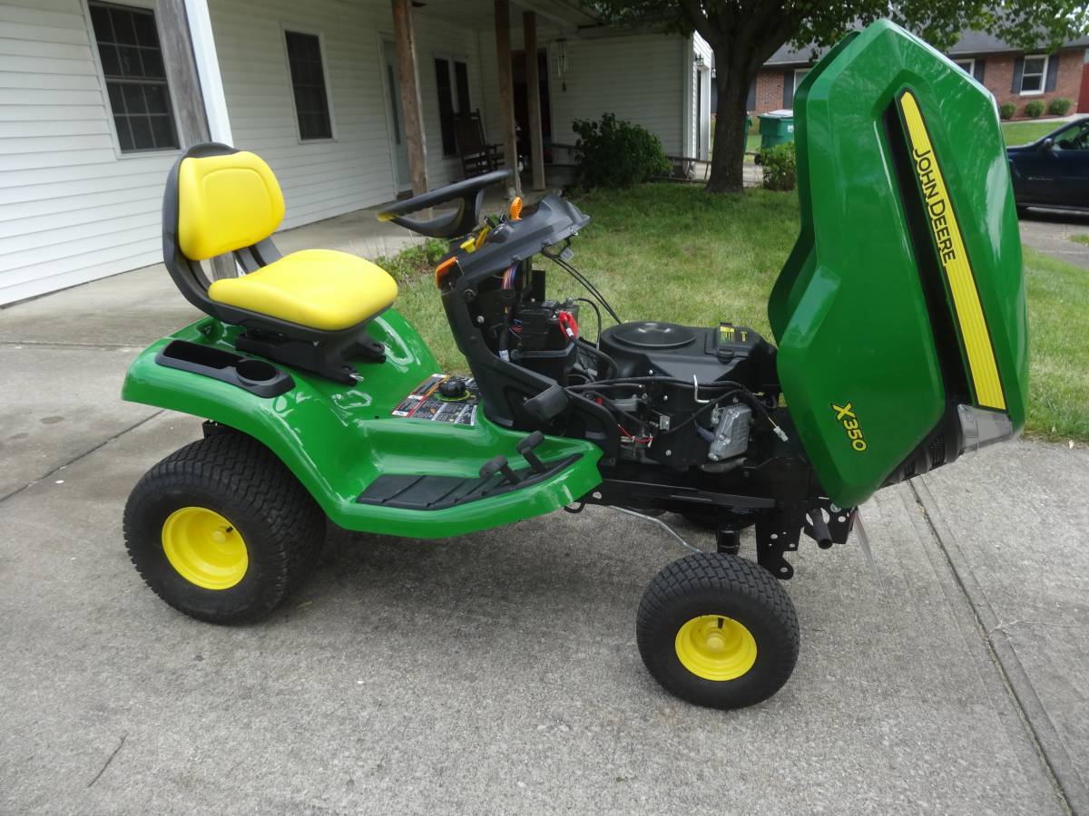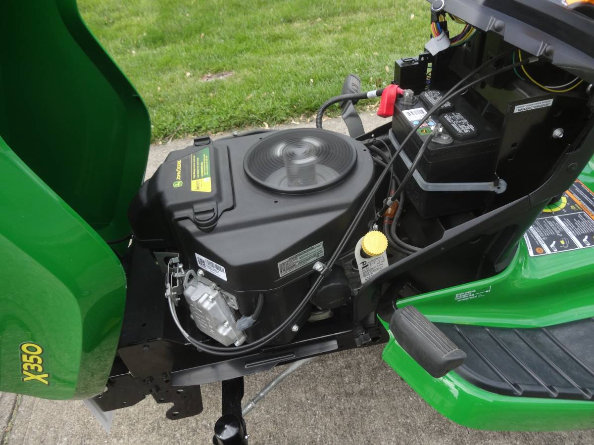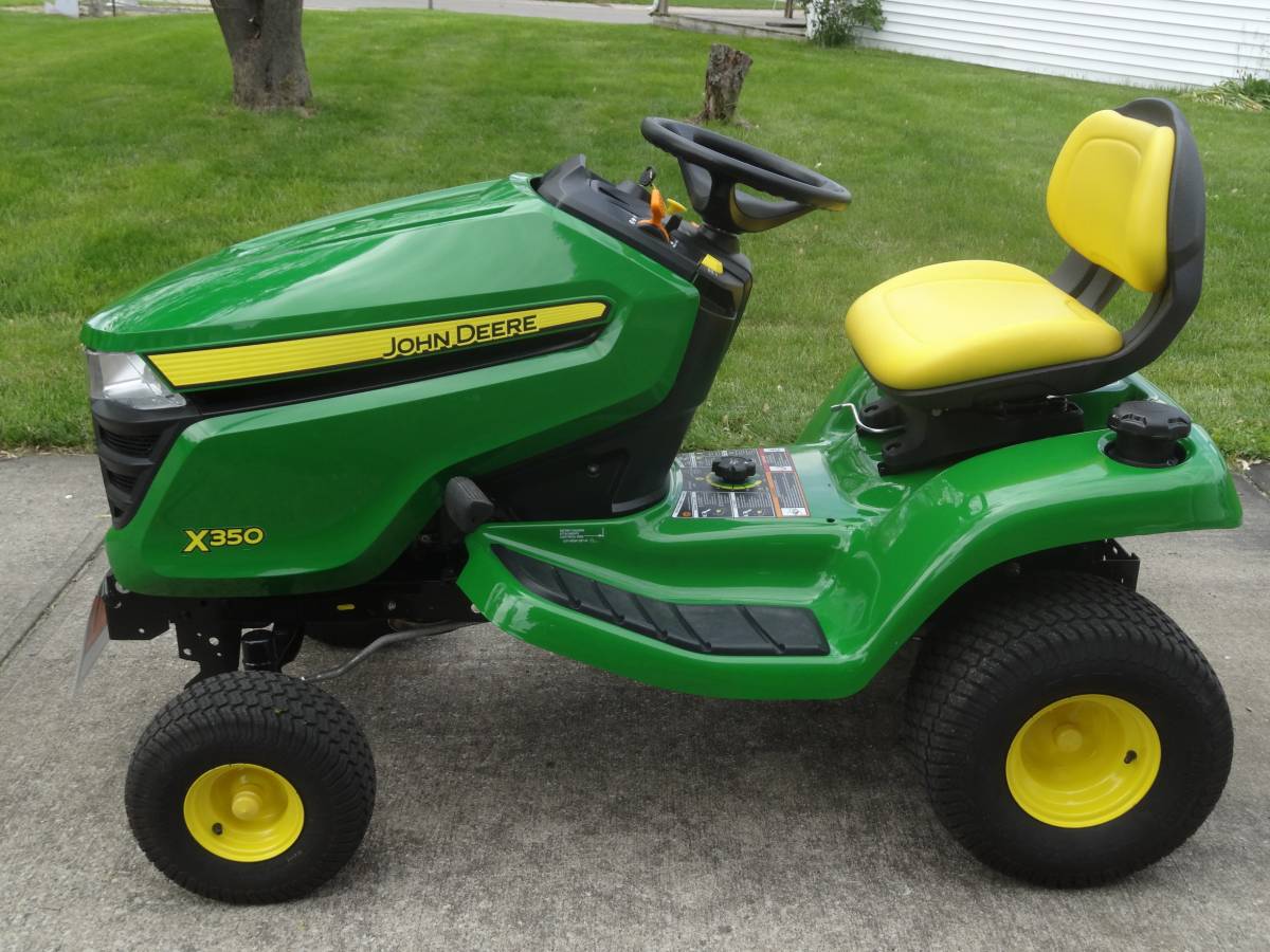 John Deere X350 only 18 hour lawn / garden tractor. Works flawlessly, and is also under bumper warranty from manufacturer. Only needs your option of mower deck and its grass cutting ready. I haven’t installed a deck on this one yet because everybody seems to need something a bit different so I decided to sell without a mower deck.