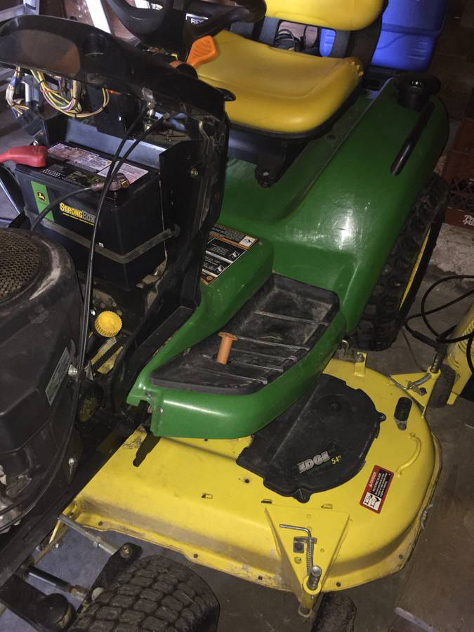 The mower has 300 hours on it and is kept in the garage. There was only one owner, and he mowed less than an acre of grass. The mower was covered by a John Deere service contract. Since it was purchased new, the mower has been covered by the dealer’s service plan. Last month, the battery was replaced.