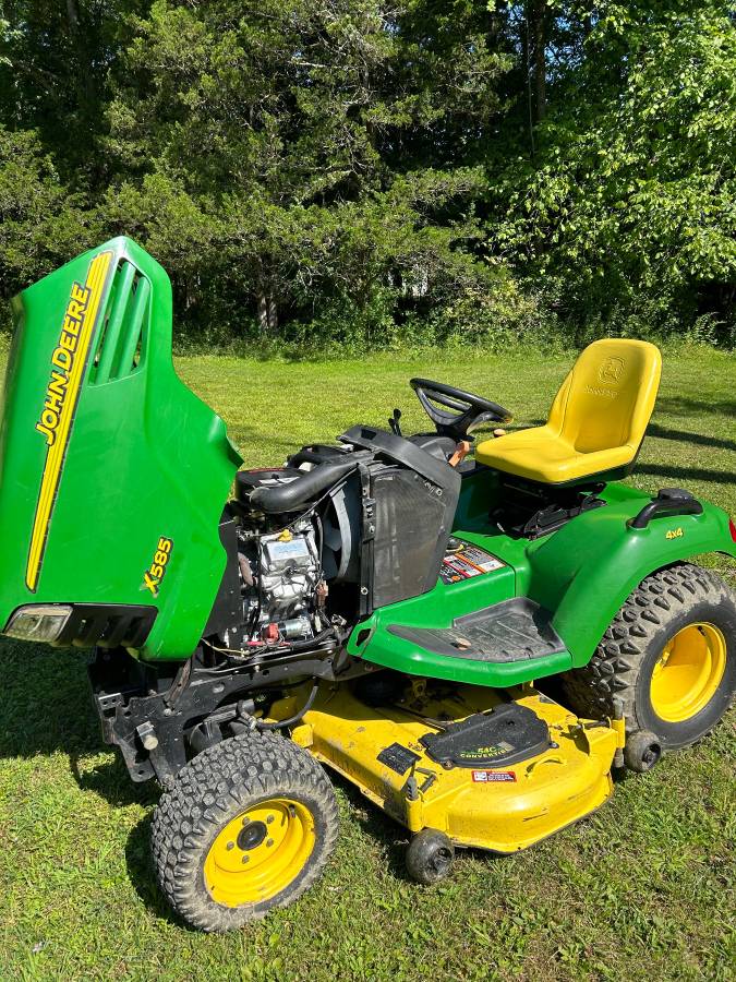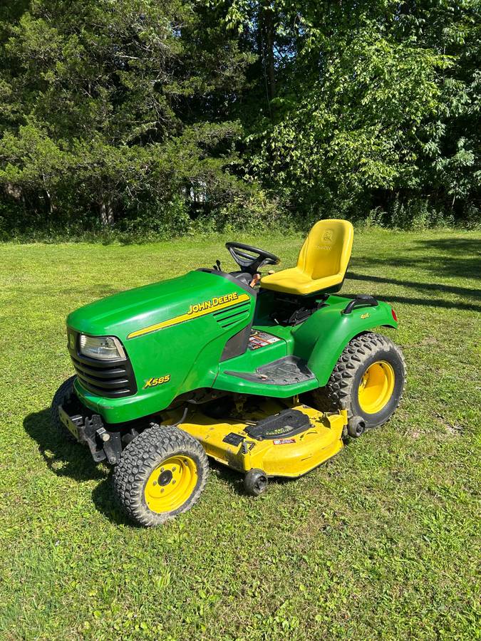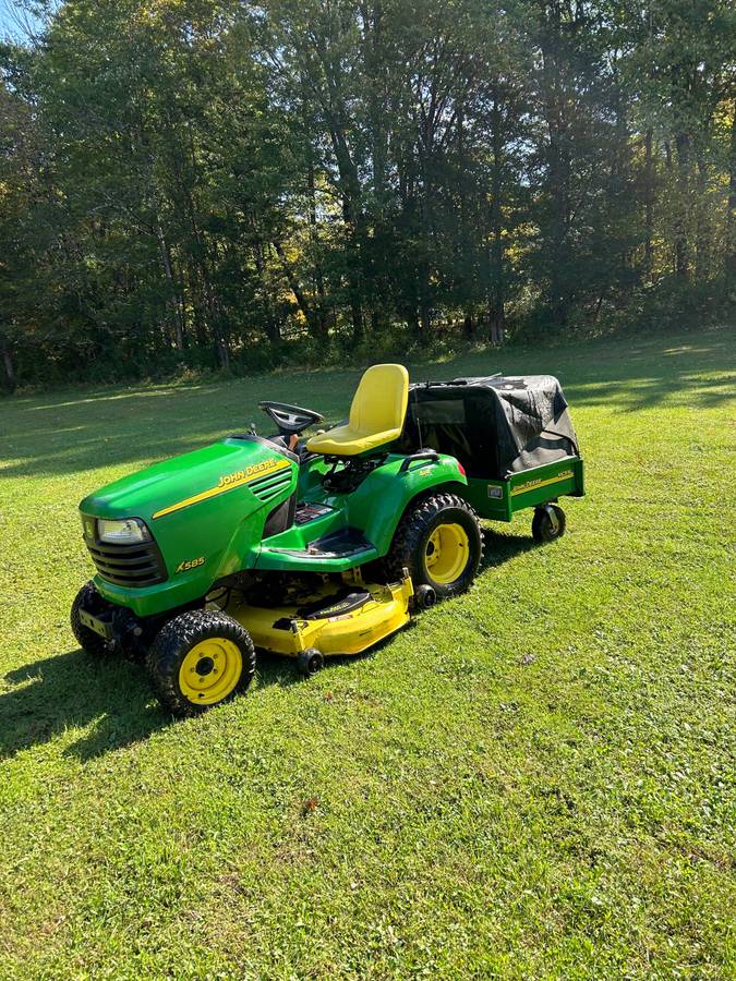 Selling a brand new John Deere x585 tractor with a 54″ mower deck, 54″ snow plow, and various features. Includes new front tires, power flow bag systems, and MC519 cart. Only selling because I bought a larger tractor. Lowered the price to sell.