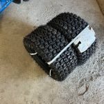– Dimensions and tires: The X585 has a wheelbase of 55.7 inches, a length of 75 inches, a width of 55.7 inches, and a height of 49.5 inches. It has a weight of 955 lbs, and a turning radius of 28 inches. It has front tires that measure 18×8.5-10, and rear tires that measure 26×12-12.