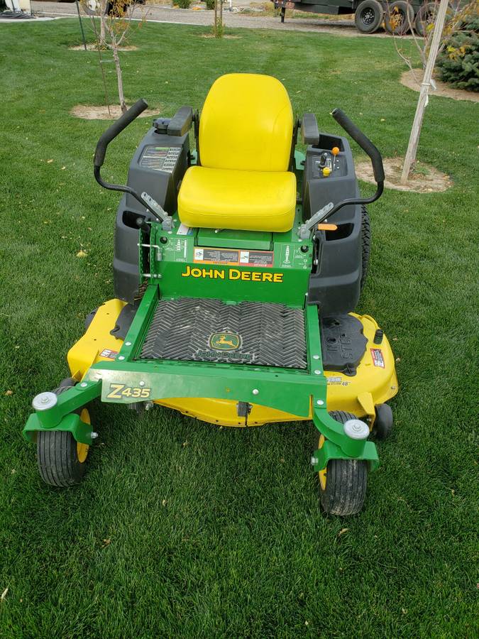 Usee John Deere Z435 riding lawn mower in pristine condition. I bought it new in February 2016. It’s always been stored inside. It was only used on my personal lawn. It’s only got 90 hours. I have a mulch kit installed and the side discharge chute comes with it.