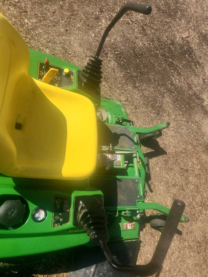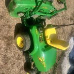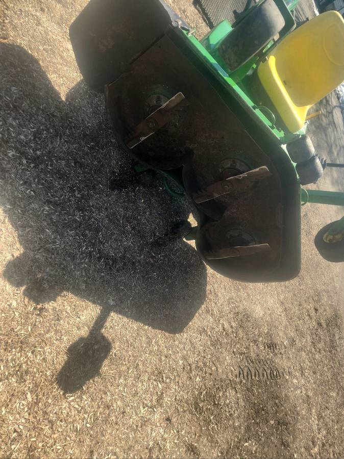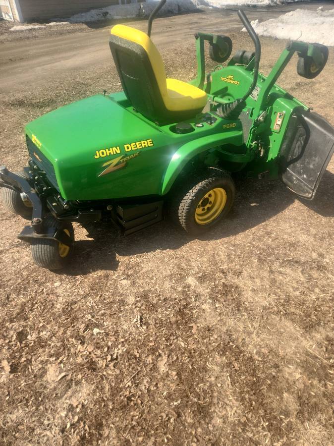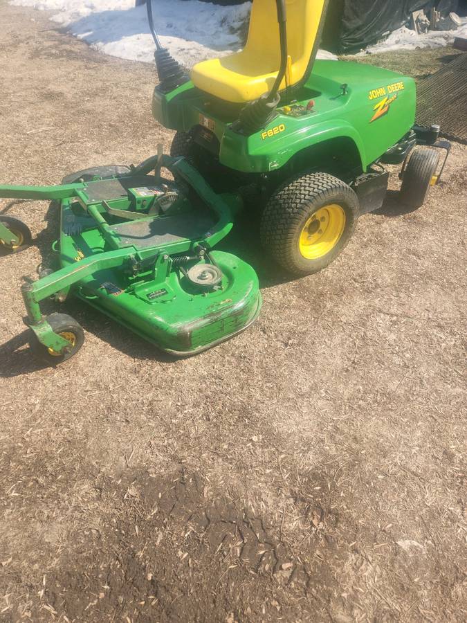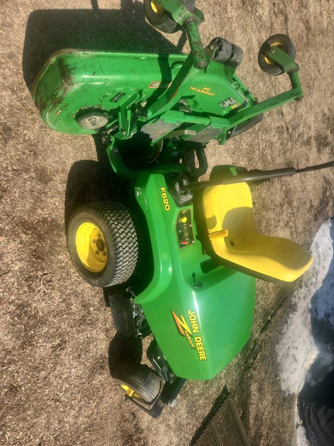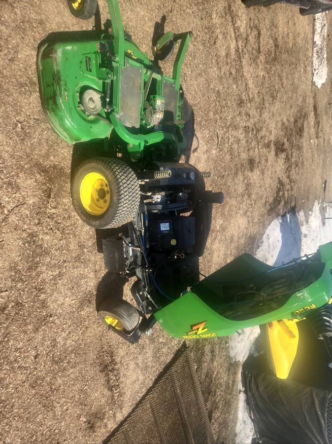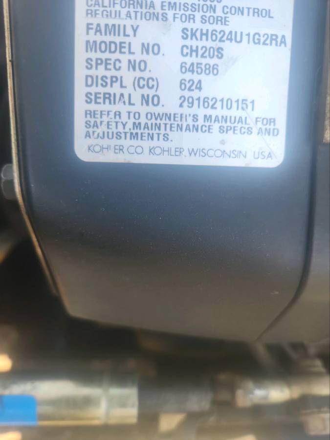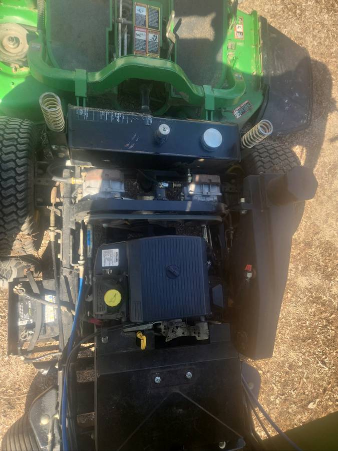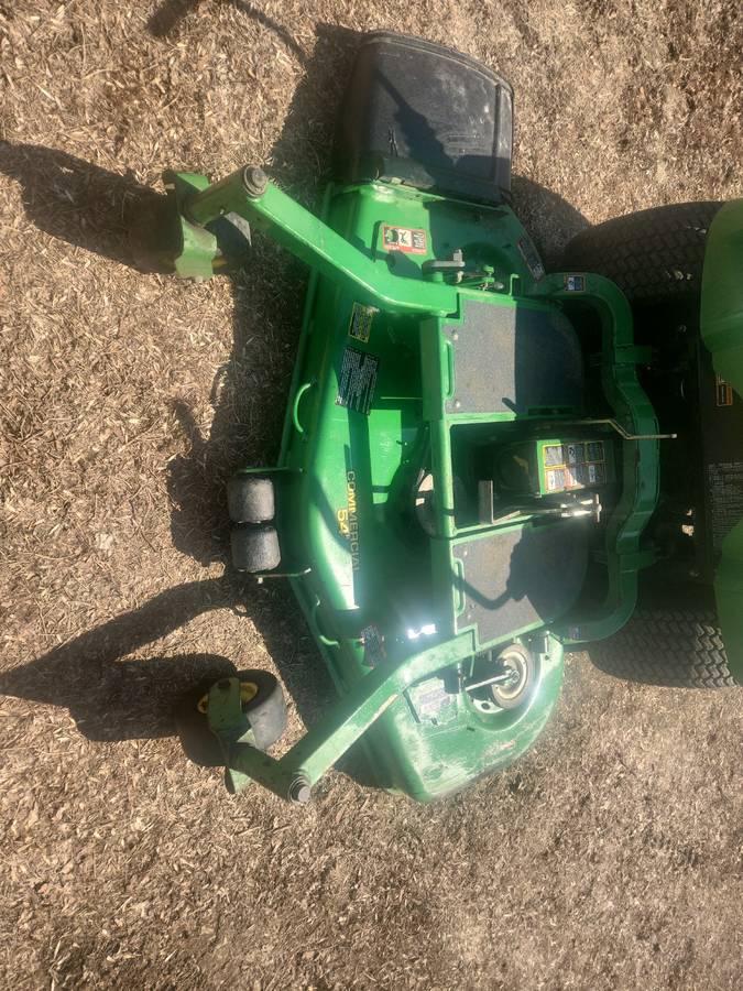 This mower is unique with its front mount mower deck, and the popular Jd 7Iron commercial grade 54 inch cut. The deck has adjustable cutting height and a flip up deflector chute. The deck also has the 90 degree fold up option for easier blade maintenance, storage and transport. The mower has a 20.0 hp / 624 cc pressurized V-twin engine with electric start and a brand new battery. The fuel tank has a capacity of 4.5 gallons.