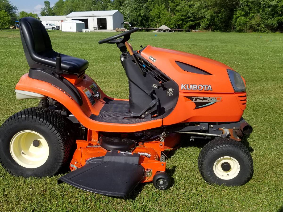 Selling a lovely Kubota T2380 mower with a mower deck of 48 inches. Mower starts and runs outstanding, mows outstanding, and is in good condition. Sorry, no trades just serious inquiries. $1450 Dollars. The 2380 Series will satisfy the most demanding homeowners, packed with a variety of apps. Designed to help you mow more efficiently and do the job faster – with a finished look of value. It should take minutes to learn how to drive. It could take a little longer to get off one.