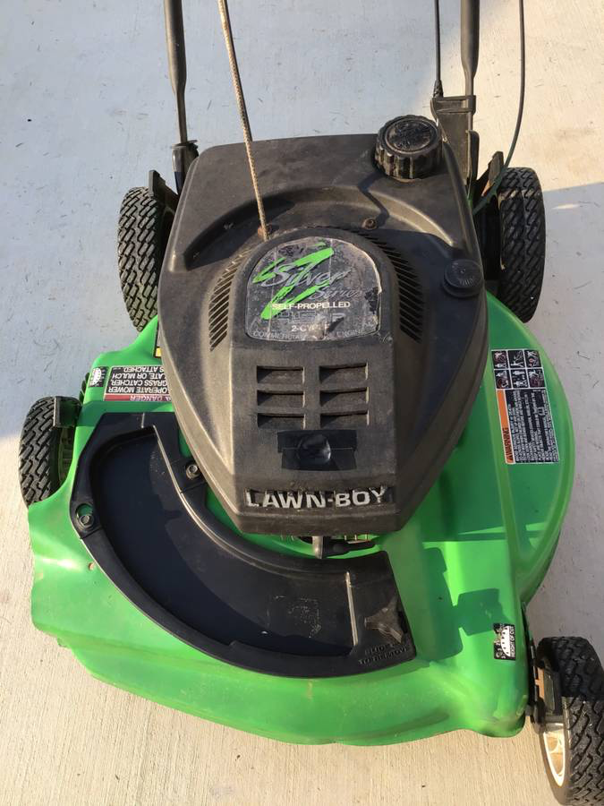 Lawn boy 2 cycle engine, 21″ cut deck, self-propelled drive, side discharge, /mower, commercial grade 4.5HP engine It runs like new and usually starts on the first or second pull. Recently performed maintenance. Carburetor cleaned/rebuilt, blade sharpened, new spark plug, new/cleaned air filter, transmission lubricated A new drive cable, a new primer bulb, a new ignition coil, and a new grass discharge plate have all been installed. It’s unusual to find it running so well. Because oil is mixed in with the fuel, it is possible to mow at a 45-degree angle. Cuts through 4″ grass with ease. There is a 10-day money-back satisfaction guarantee as well as a 30-day labor warranty. If you’re reading this, it’s still available.