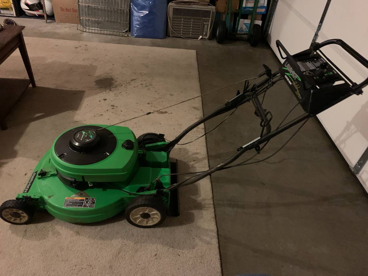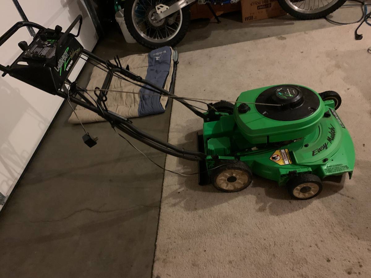 The Lawn-Boy 2 stroke 21 inch gold series mower is in excellent condition and is a fantastic machine. These mowers were manufactured in the late 90s and feature an aluminum body that prevents rust. It has both electric and pull start capabilities and is self-propelled with three speeds. The mower comes with a reliable bag, mulch plug, and side discharge. Additionally, it includes a well-functioning battery with a charger, as well as three blades.