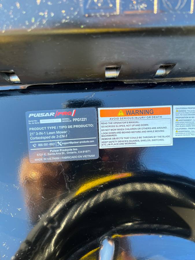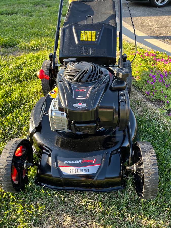 This Pulsar PPG1221 Lawn Mower in black has only been used once and is in excellent condition, almost like new. It is equipped with a 140cc Briggs and Stratton 500E Series Engine, a 21″ cutting width, and a 3-IN-1 cutting feature that allows for mulching, rear bagging, and side discharge. The height adjustment is conveniently controlled by a single lever with 7 positions, and it has 7″ front wheels and 10″ rear wheels. This mower is currently being sold at Walmart for $349. It’s a great opportunity to get exactly what you see in the picture, and it’s a steal at this price!