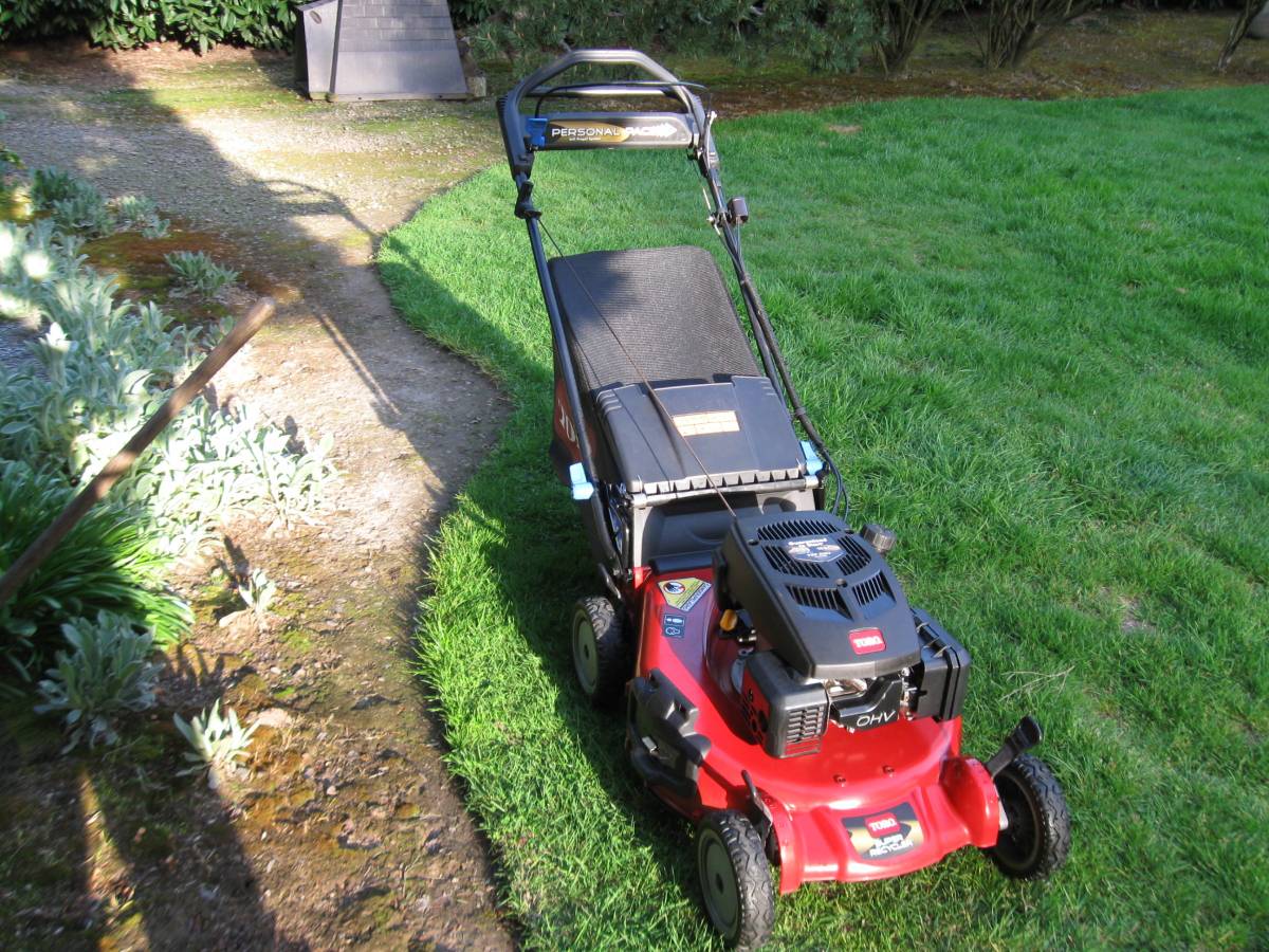 Toro lawn mower Personal Pace model 20383, in excellent condition with minimal usage, is being sold on behalf of an elderly woman who switched to an electric model due to a shoulder injury. This super recycler features a personal pace rear-wheel drive, a 159cc Briggs engine, and a 21″ cutting width, along with a blade brake system that allows for easy starting on the first pull. All documentation is available. The mower has been fully serviced and is ready for use.