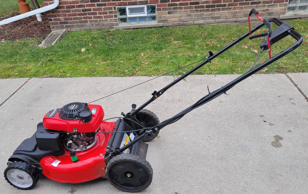 A Honda GCV160 engine powers this MDT 21″ self-propelled, mulching lawnmower. This mower comes with a new air cleaner, a sharpened blade, brand new front drive wheels, a cleaned carburetor, new gas, and new oil. Using the primer, this starts cold. When warm, it runs and idles smoothly. You’ll have a hard time finding a better deal anywhere. You can find mowers for less money, but they will not be serviced. Please keep in mind that this does not come with a bag.