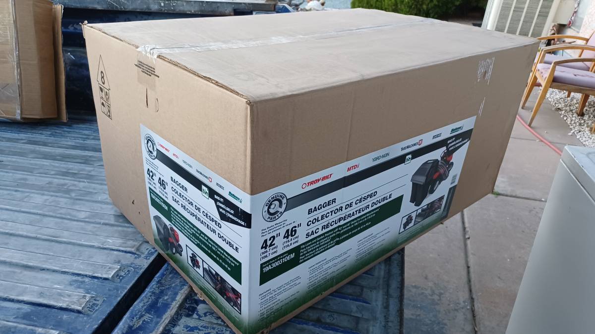 Attachment for a Troy-Bilt riding lawn mower and other makes and models. Brand new in unopened packaging. In-store, the MSRP is $419 plus tax.