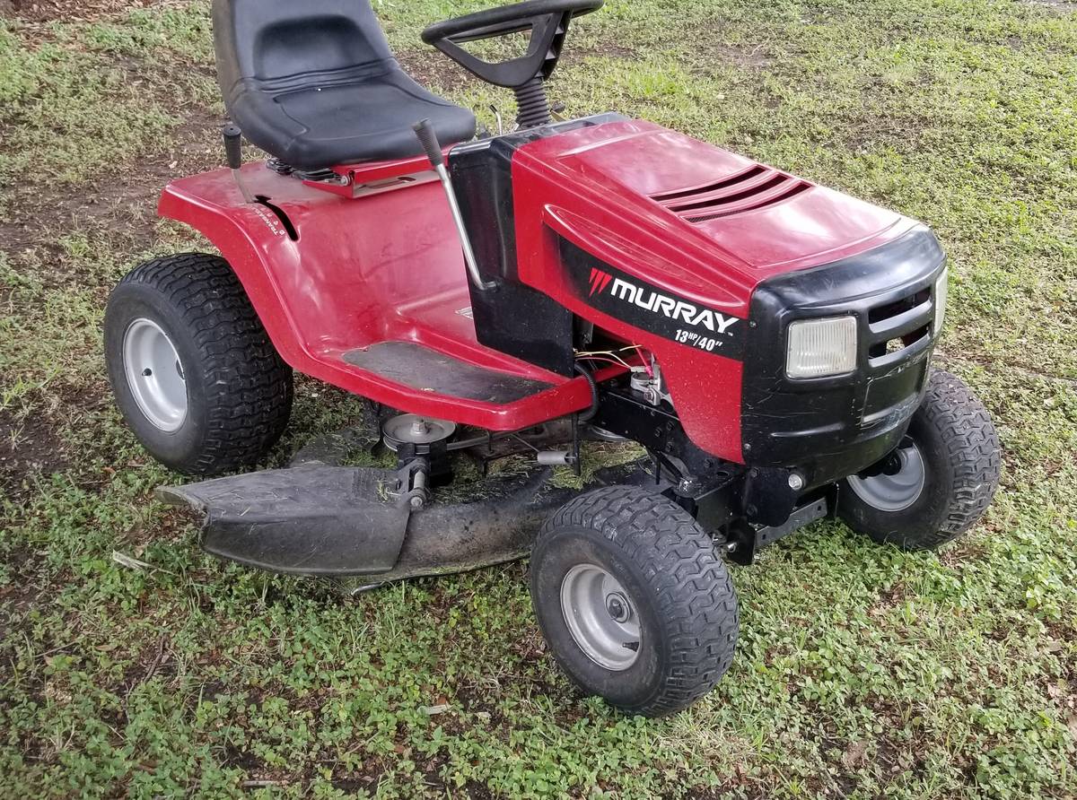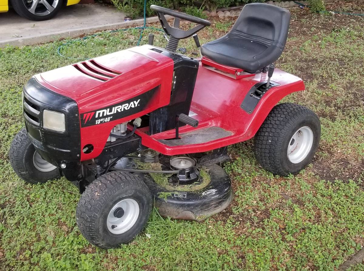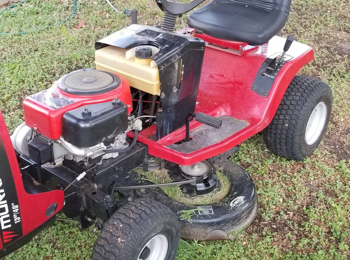 Ready to use Murray 13hp /40in double blade ride on mower. Runs and cuts great with 6 level deck cutting, 5 drive speeds.