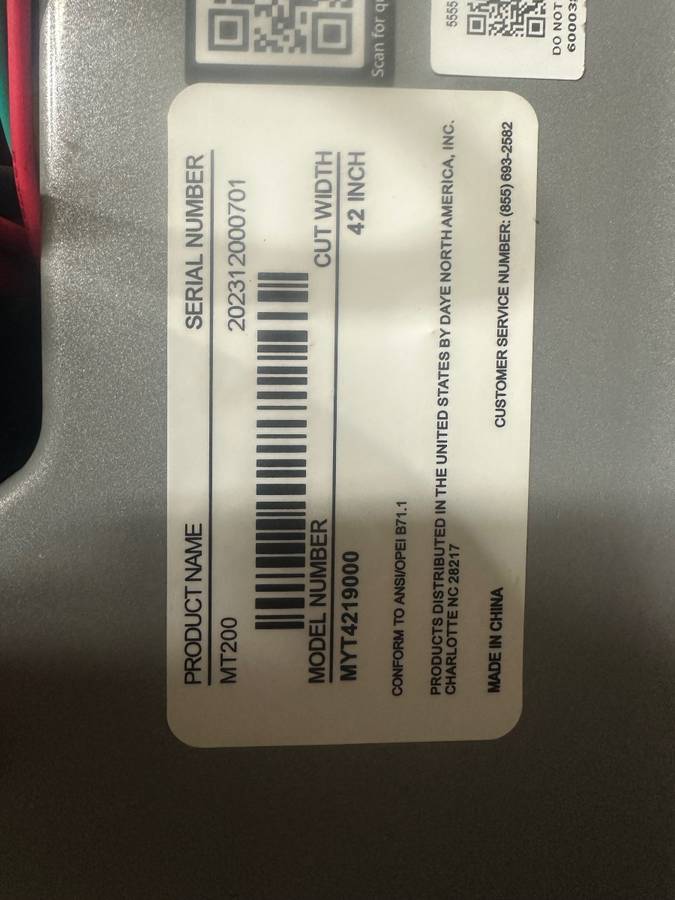 Brand new and unused! The MT200 is a 42-inch riding lawn tractor equipped with a powerful 19.0 HP Briggs and Stratton 540cc engine from the EX1900 Series. It includes two new keys for convenience.