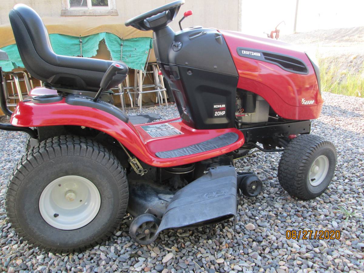Sears Craftsman YS-4500 riding lawn mower with 20hp 42″ cutting frame, like new one, stored in garage, one user, well maintained, with a 3 bag grass catching device, 481 hours on the machine. It also has mulching blades that are like new ones. Unique 20 hp Intek Plus engine. Special 42 “Precision Cut Plus Deck W/4 Adj. Wheels of gage. Spring Mounted Deck Raising Machine. Ez Hydrostatic / Auto Transmission Drive.