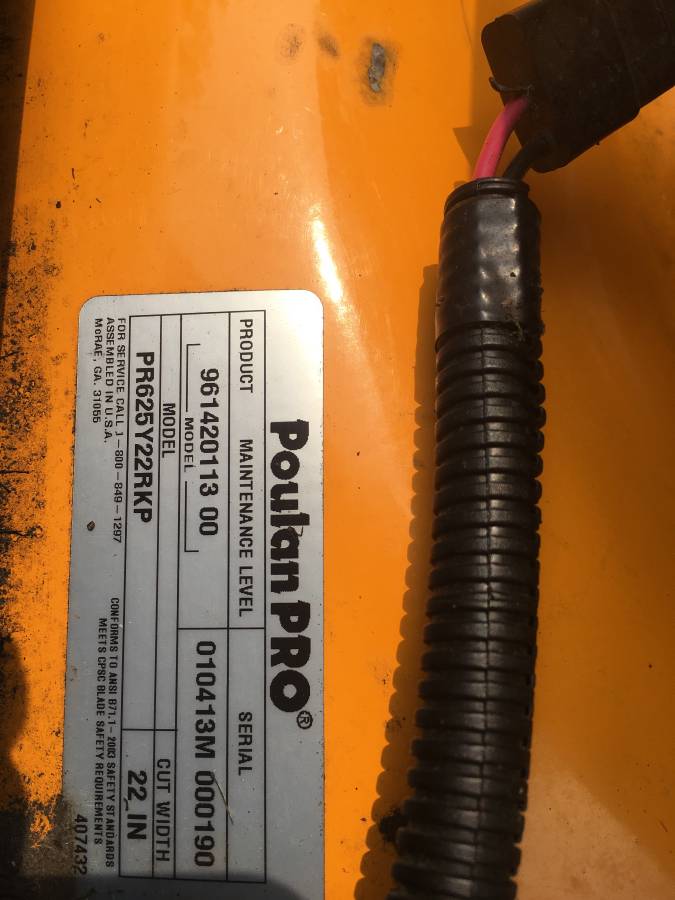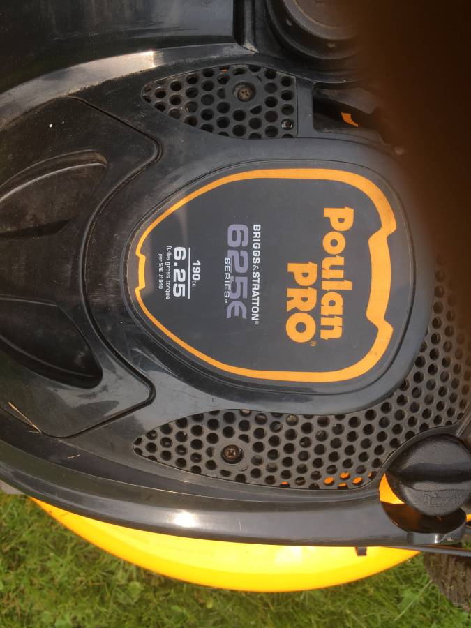 Poulan pro 625 E series with Briggs and Stratton engines 190cc and 6.25 ft-lb on it. It has distinct tanks of gas and oil so the days of blending your gas are gone. Runs fantastic fresh gasket and reconstructed carb and fresh sparkpug. It’s a bit finicky to start but it does. Good cuts of grass. There’s no need for it anymore, it just has a fresh one.