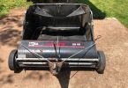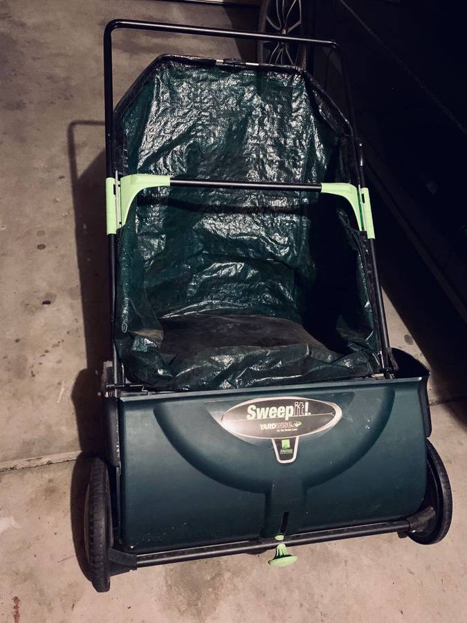 This lawn sweeper spent years collecting dust from the seats. Still maintained shed. It is in a very good shape and it functions well. This lightweight yard sweeper has a dial-in height variable which can be adjusted to match the needs of the customer. This function ensures optimum efficiency across various types of surfaces like lawns, sidewalks, and driveways. The easy-to-push sweeper can be controlled easily by a variety of persons.