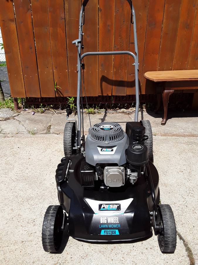 I am selling a Pulsar 20 Big Wheel Push Lawn Mower with the model number PTG12205B. It has a 150 cc OHV Engine and a Single Lever that makes 5 Position Height Adjustment easy. The mower also has Wheel Bearings and Mulching Capability with Side Discharge. It is in Like New Condition with the Blade Sharpened and Balanced, Oil Changed, Spark Plug Cleaned and Gapped, and Air Filter Cleaned. The mower Starts One Pull and Runs Perfectly. It has also been Power Washed.
