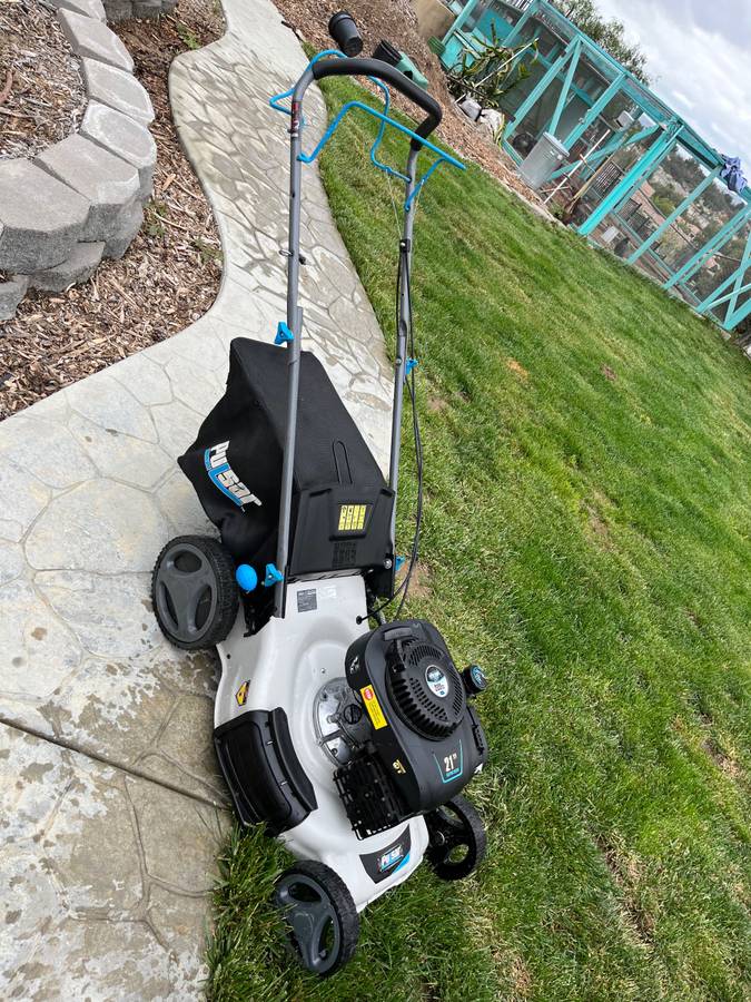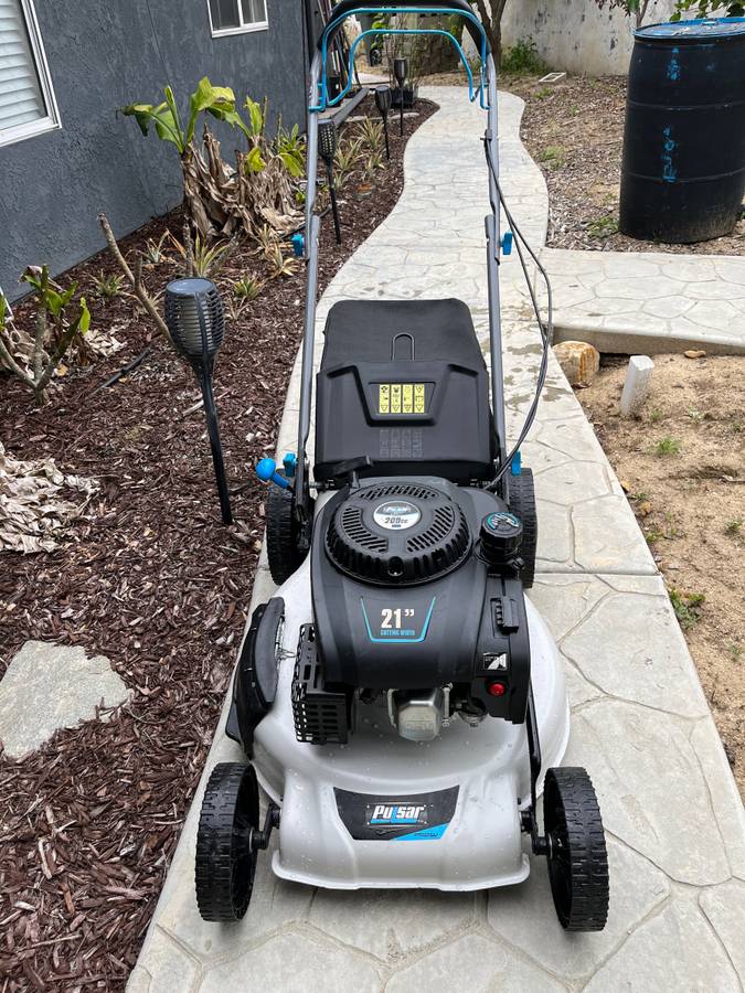 Get the Pulsar PTG1221SA2 lawn mower in great condition! It has a 7 position height adjustment, 21” cutting width, side discharge, rear bag, and 3-in-1 mulching capability. The 200cc 4-stroke gasoline powered engine is reliable and it has 8” front wheels and 10” rear wheels. It starts with a recoil start. This machine was bought at an estate sale and is sold as is running. Retail price at Home Depot is $349 + tax. Don’t miss out on this summer sale!