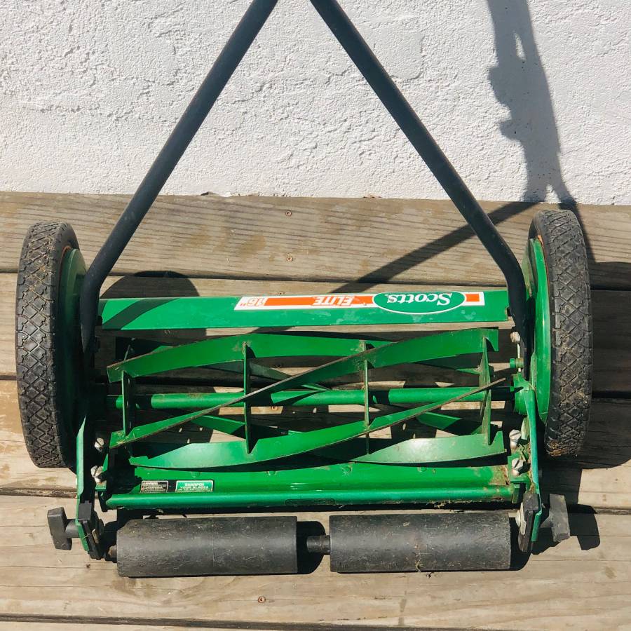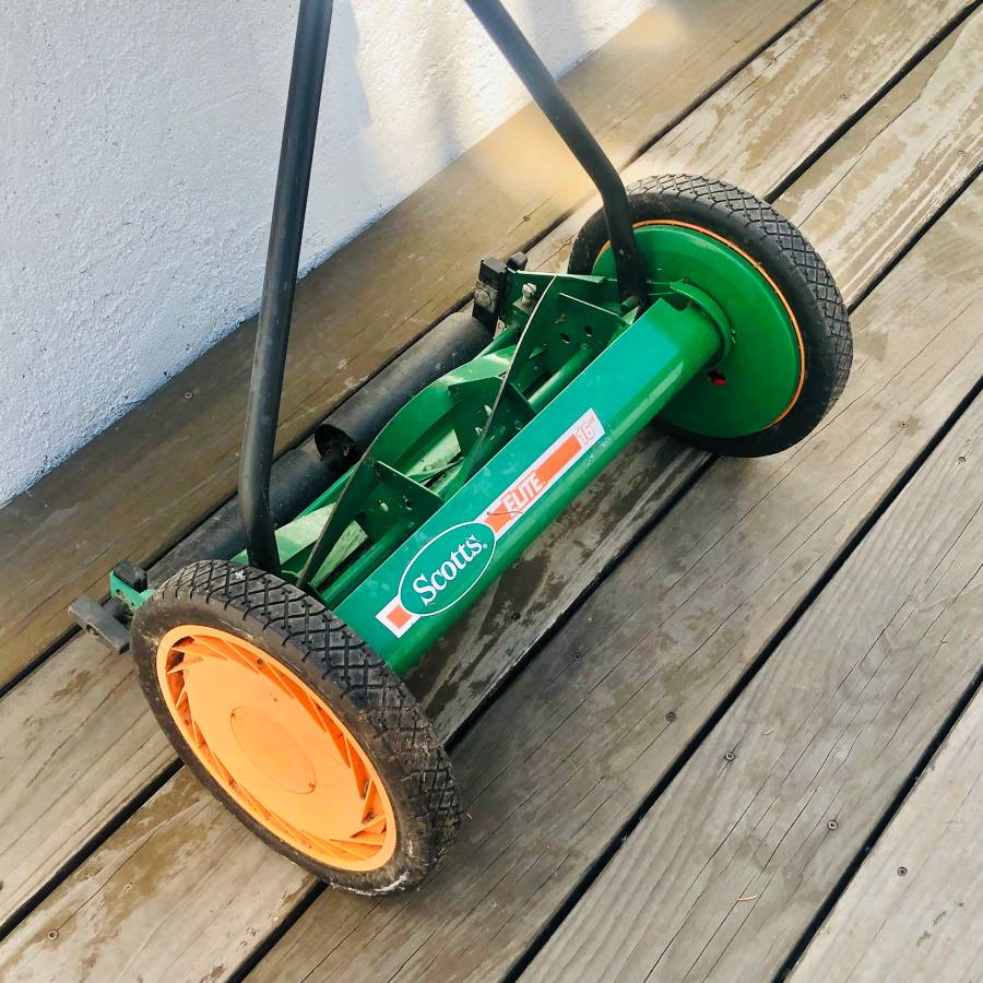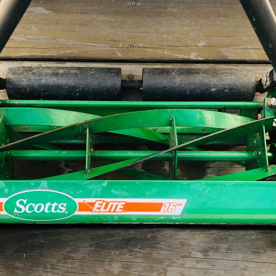 For sale: Scotts Elite 16-inch Walk Behind Push Reel Lawn Mower in excellent condition.