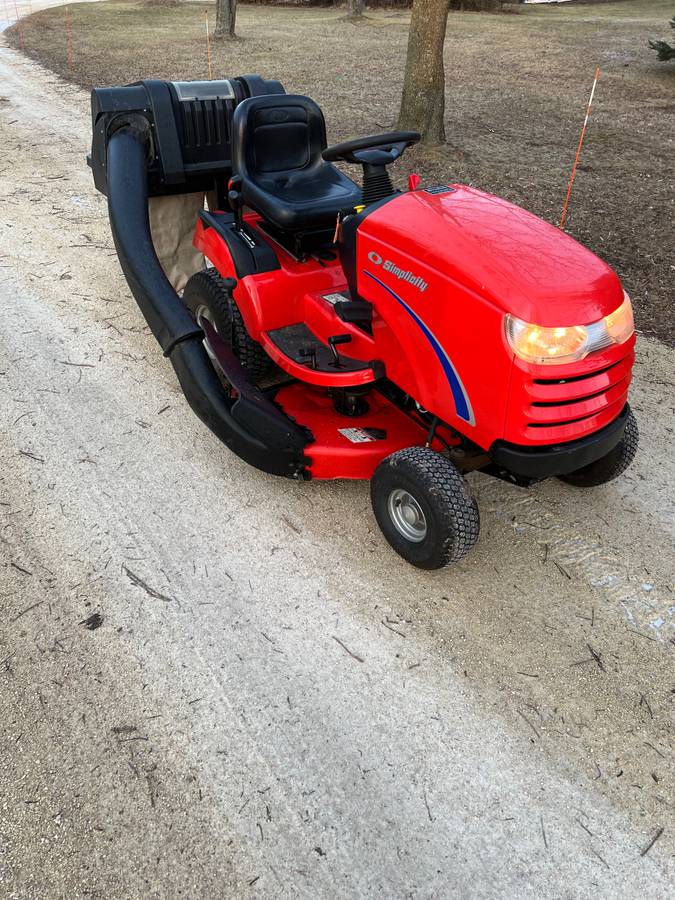 Simplicity Broadmoor riding lawn tractor with double bagger unit, like new. The mower deck is 38″ and the engine is a 16 horsepower Briggs and Stratton Vanguard series twin cylinder engine. It has 440 hours on it, which is nothing, and everything on it works flawlessly. I also have all of the manuals for it. This machine has been meticulously cared for its entire life and is serviced annually. The asking price is $1800 in cash only.