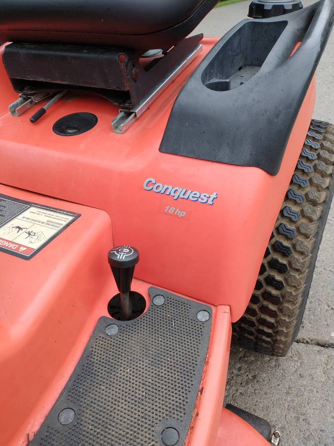 This Simplicity Conquest 1850 Riding Mower will make lawn care, gardening chores, and fall cleanup a breeze. 700 hours, 18 hp Briggs and Stratton Vanguard engine, 50″ wide cut For increased traction and pulling power, a hydrostatic transmission with a locking rear differential is used. This isn’t your typical Lowe’s or Home Depot mower.