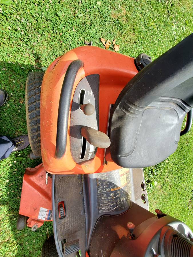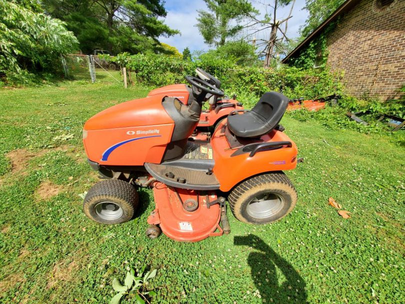 Electric cutting height control and hydraulic deck lift. Heavy-duty 54″ shaft-driven mowing deck. Earlier this season, I had the engine oil and filter changed, as well as the transmission serviced, and I was ready to mow. Scratches and wear on the paint are to be expected. It runs and mows beautifully, and it’s a delight to operate. Serious buyers are invited to come have a test drive.