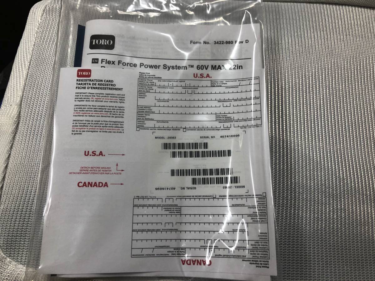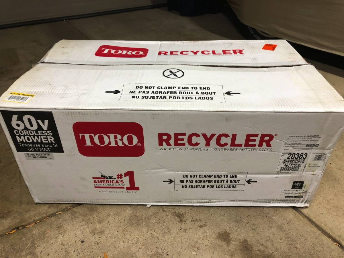 This is a new Toro 60 volt lawn mower in a box. It includes a baggage compartment, 60 volt 6.0Ah battery and a charger. Take a look at the photos and ask any questions in front of you. Retail Unit for $550 plus taxes.